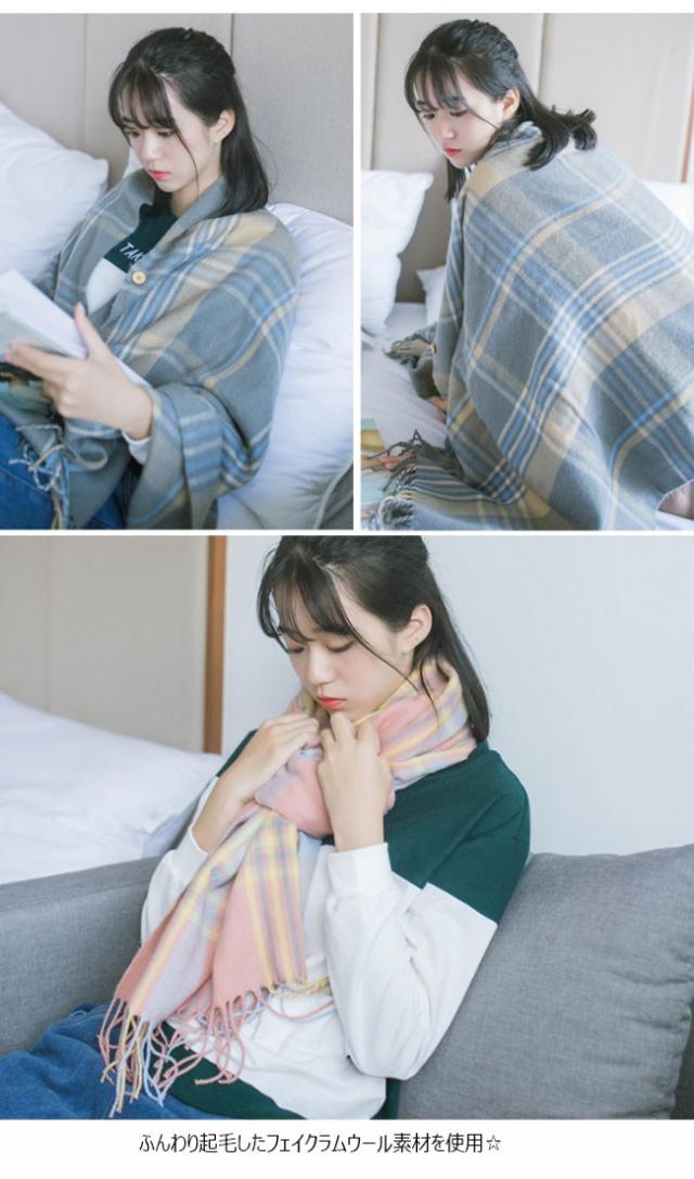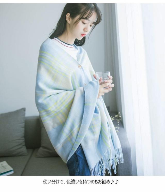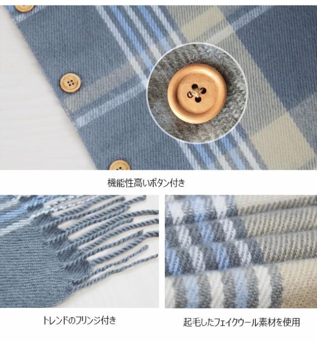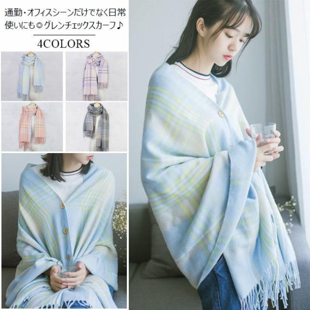 カシミアタッチ 秋冬スカーフ グレンチェック 2wayスカーフ ストール レディース 大判 ボタン付き 防寒対策 マフラー 2020秋冬新作