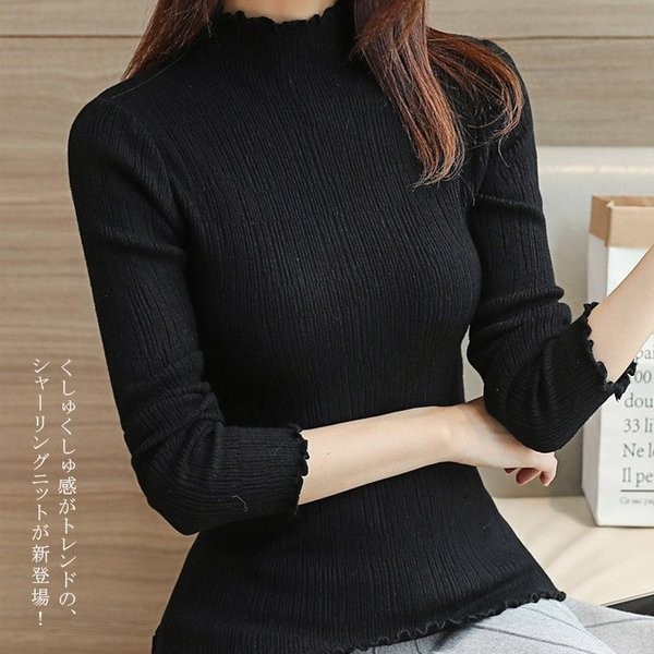シャーリング ニッセーター タートルネックハイネック ニットセーター 秋冬物 ポイント消化