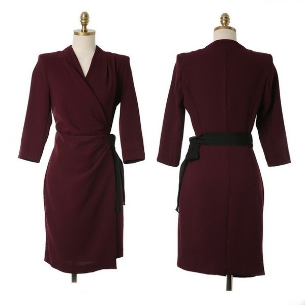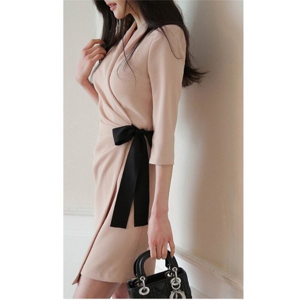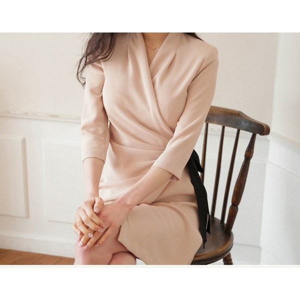 ワンピース タイト ラップデザイン ミニ ミディ丈 膝上丈 Vネック 七分袖 大きいサイズあり 大人っぽい きちんと感