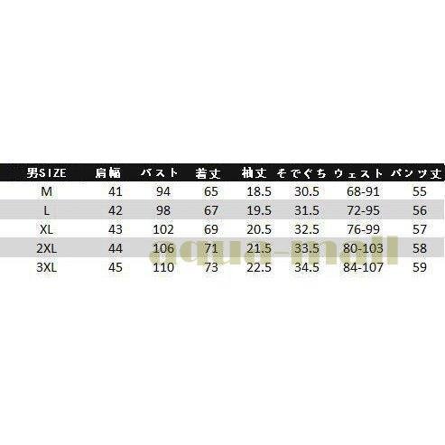 | サイズ | 女S 女M 女L 女XL 女2XL 男M 男L 男XL 男2XL 男3XL |