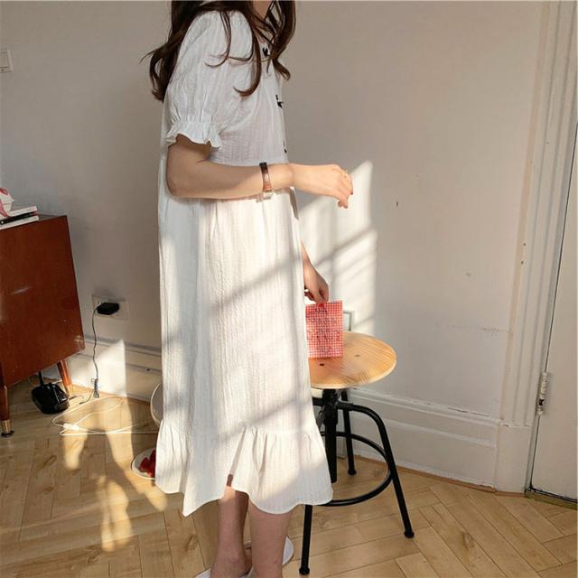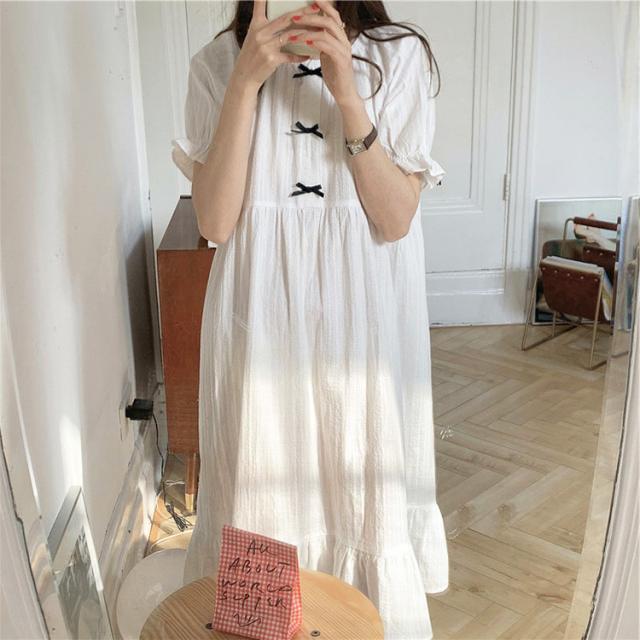 ネグリジェ 春夏 レディース 半袖ワンピース 白レースリボン 大人可愛いパジャマ お姫 ロング丈ネグリジェ ナイトロープ 部屋着 オシャレルームウェア ゆったり