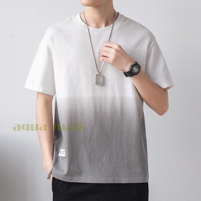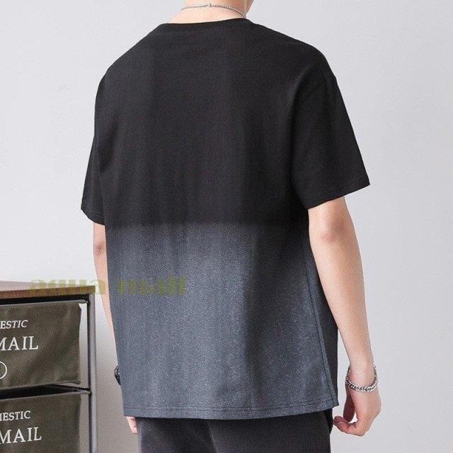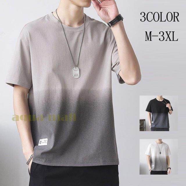 Tシャツ 半袖 メンズ 夏服 配色 カットソー グラデーション クルーネック 涼しい 夏 トップス メンズファッション 父の日