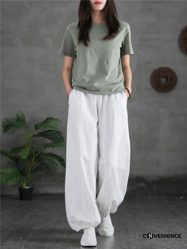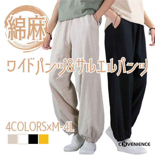 ワイドパンツ レディース 大きいサイズ 夏 サルエルパンツ ロングパンツ テーパード 薄手 リネン 綿麻 サマー ウエストゴム ハイウエスト 美脚 涼しい