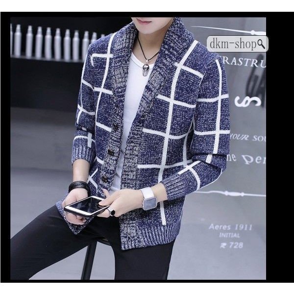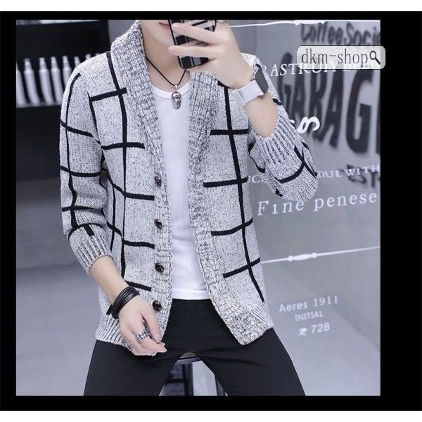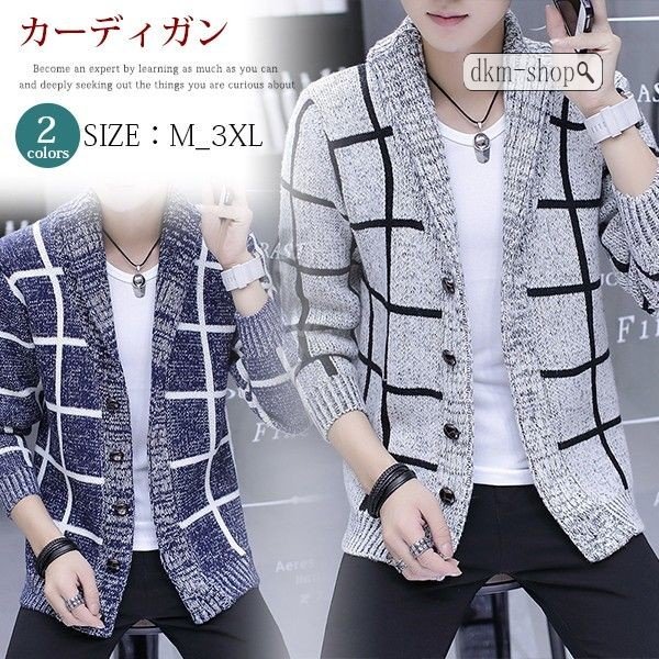 メンズ ロング丈 カーディガン 大きいサイズ 長袖 ニットカーディガン アウター 羽織 コート トップス 春秋 おしゃれ チェック柄