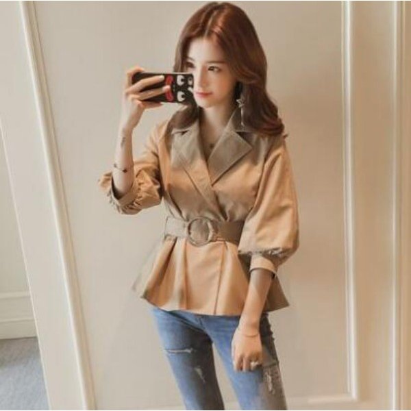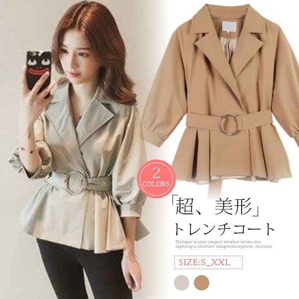 トレンチコート レディース 春秋 40代 ショート丈 ゆったり 大きいサイズ ジャケット 韓国風 カジュアル