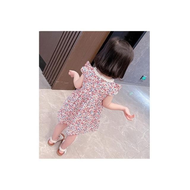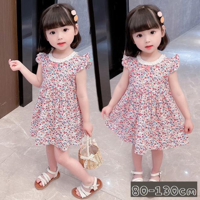 ワンピース ノースリーブ ベビー キッズ 子供服 女の子 ミニ丈 ショート丈 フレア フリル レース リボン 小花柄 かわいい おしゃれ ガーリー お