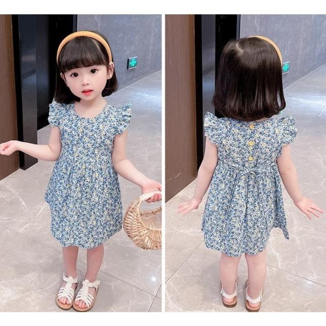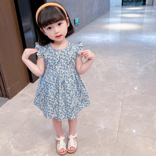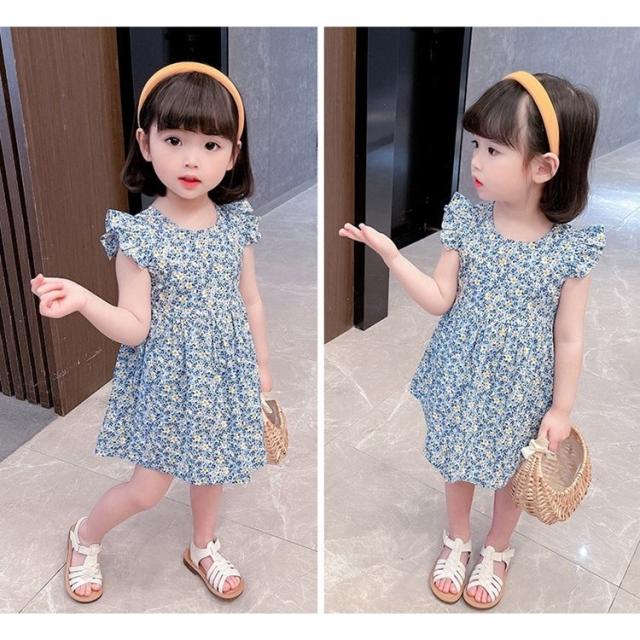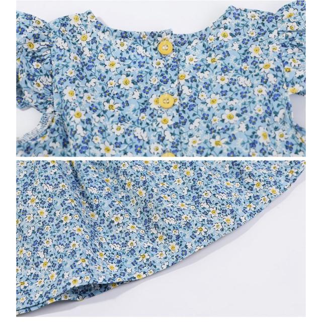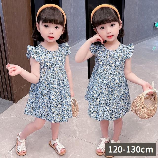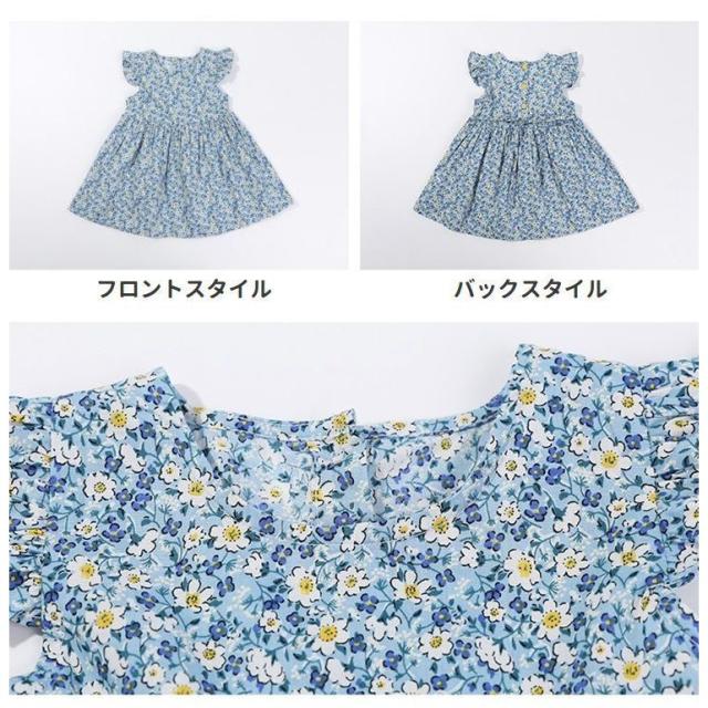 ワンピース ノースリーブ キッズ 子供服 女の子 ミニ丈 ショート丈 フレア ラウンドネック フリル 小花柄 かわいい おしゃれ ガーリー 子ども用