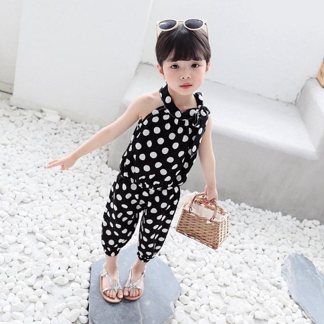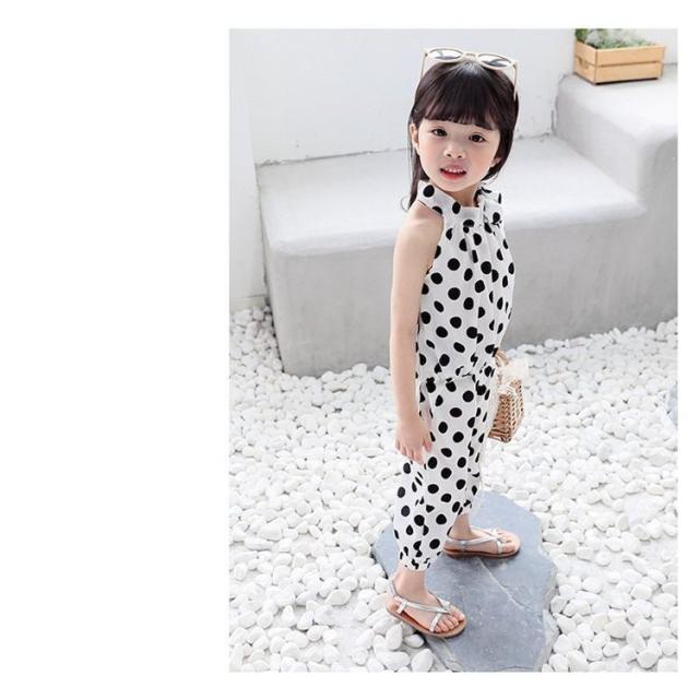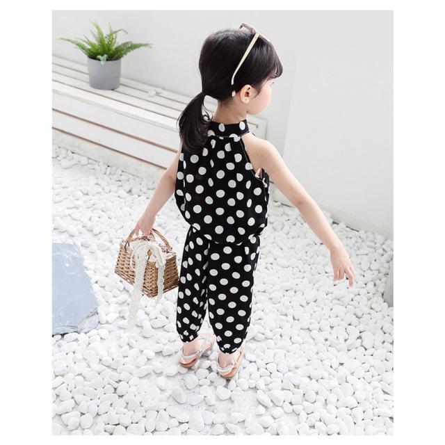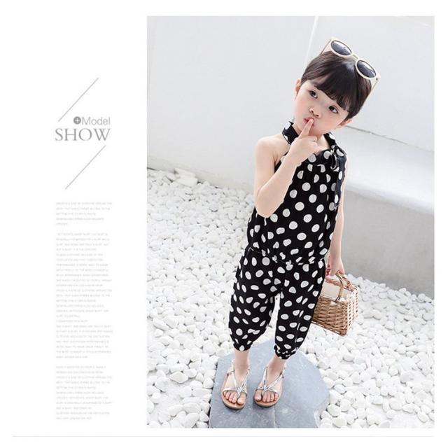 セットアップ 上下セット 2点セット ノースリーブ 七分丈ズボン キッズ こども服 女の子 トップス ボトムス ホルターネック ドット 水玉 リボン