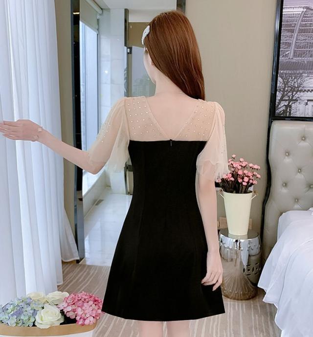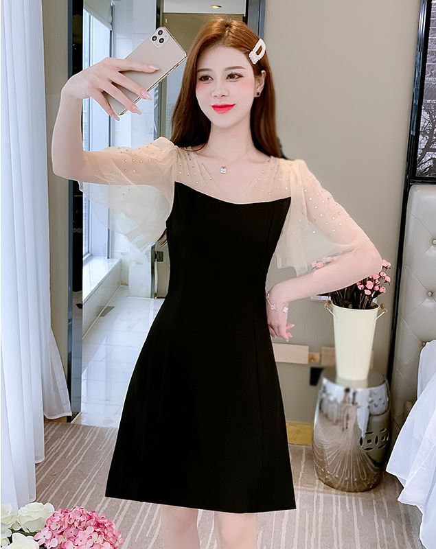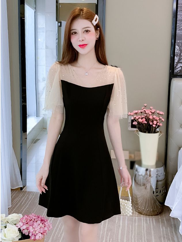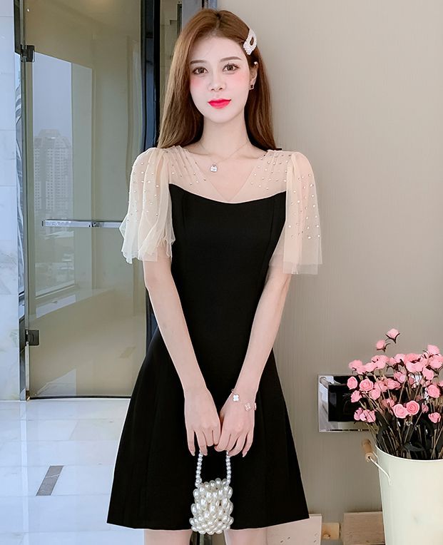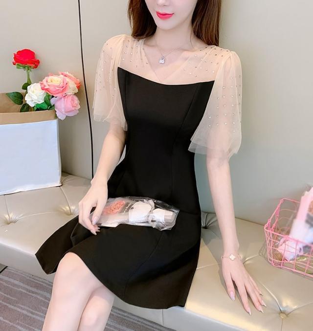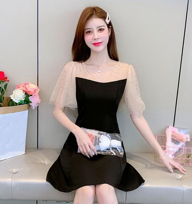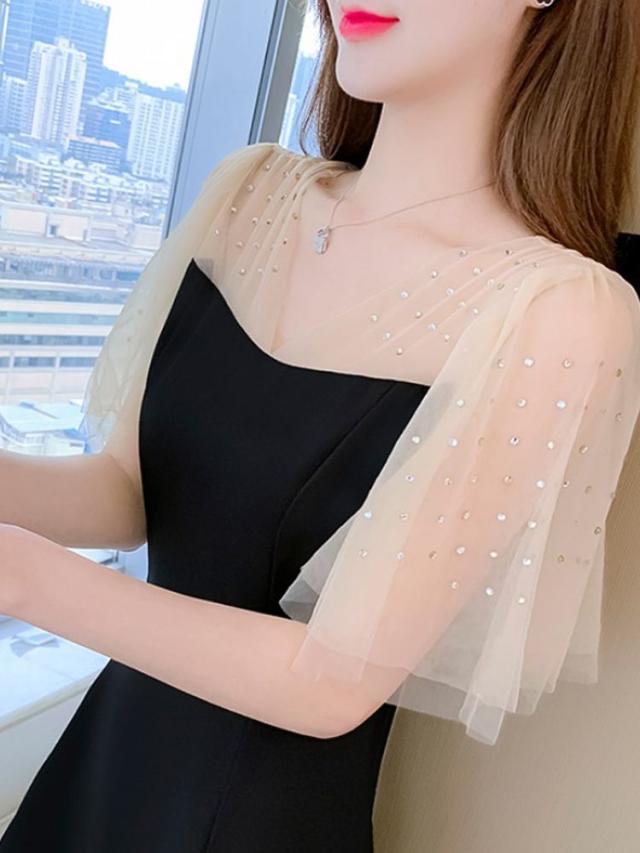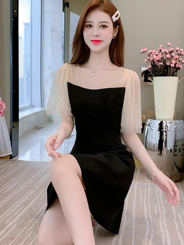 ワンピース 透け感 ウエストシェイプ ショート丈 ブラック エレガント パーティースタイル 二次会 セクシー クール 優雅 上品 美人 発表会
