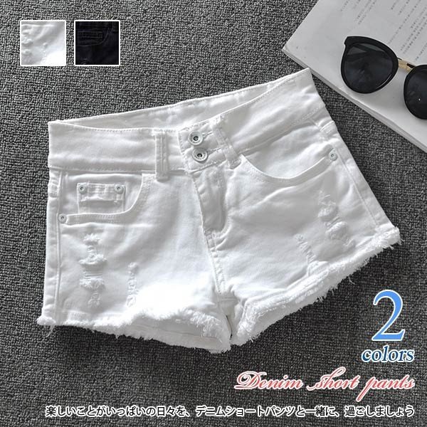 ホットパンツ ダメージデニム レディース クラッシュ 切りっぱなし フレイドヘム ミニ 大きいサイズあり 白 黒 夏 ショ