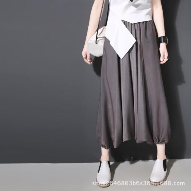 サルエルパンツ レディース ガウチョ スカート風 大人 ワイドパンツ 薄手 体型カバー 九分丈 ブラック グレー カジュアル 2020夏新作