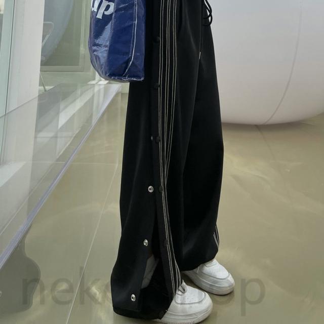 サイドライン ロングパンツ レディース ダンス 韓国ファッション カジュアル ワイドパンツ ガウチョパンツ スポーツ ストレートパンツ 原宿系 ヒップホップ