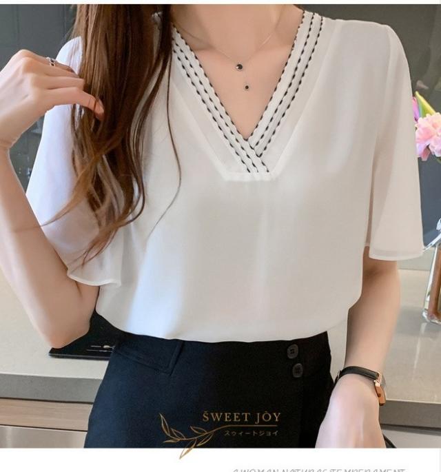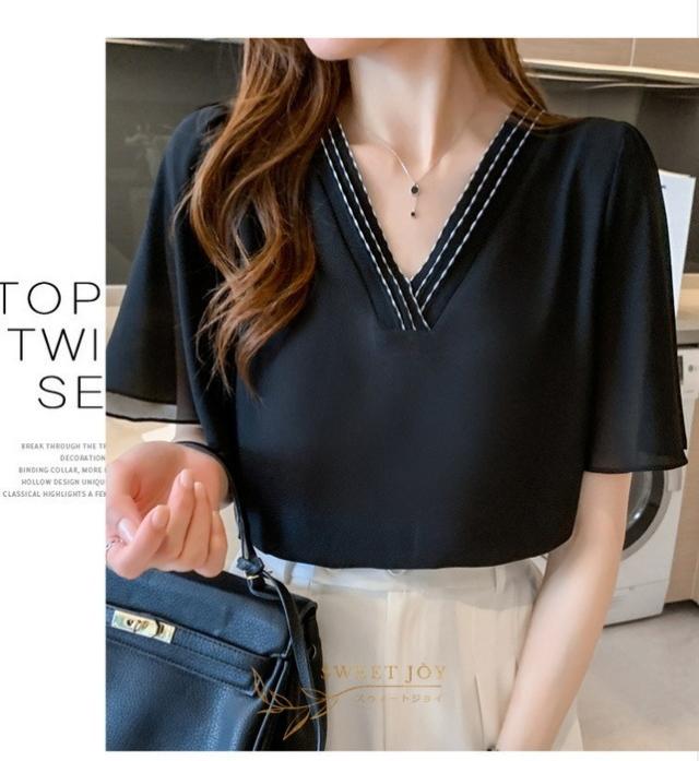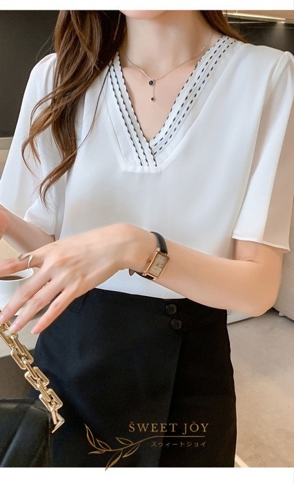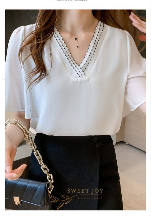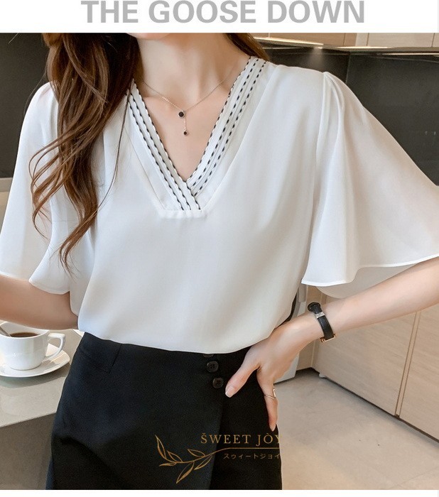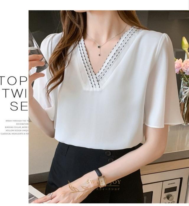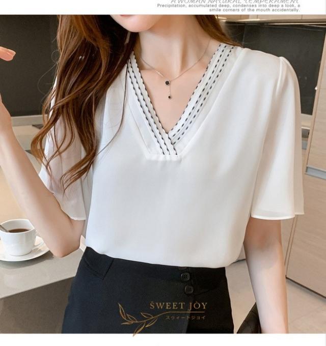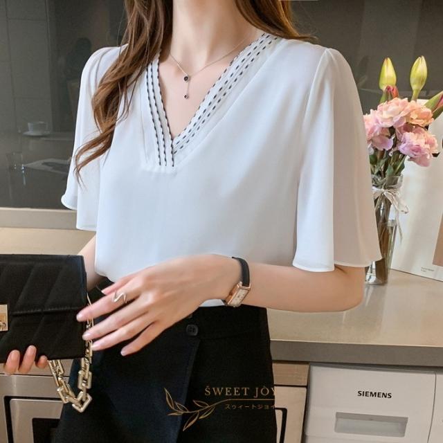 ブラウス レディース 40代 春夏新作 オシャレブラウス シフォンブラウス白 Vネックブラウス 半袖ブラウス 韓国風トップス 通勤 OL ゆったりシャツ 30代 50代