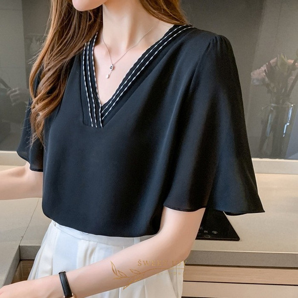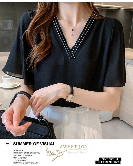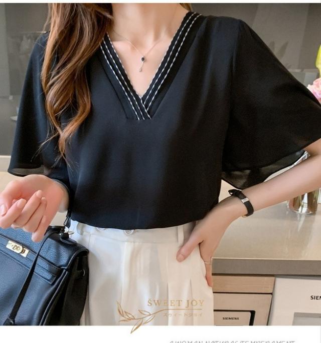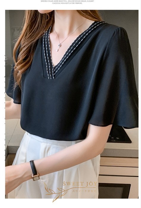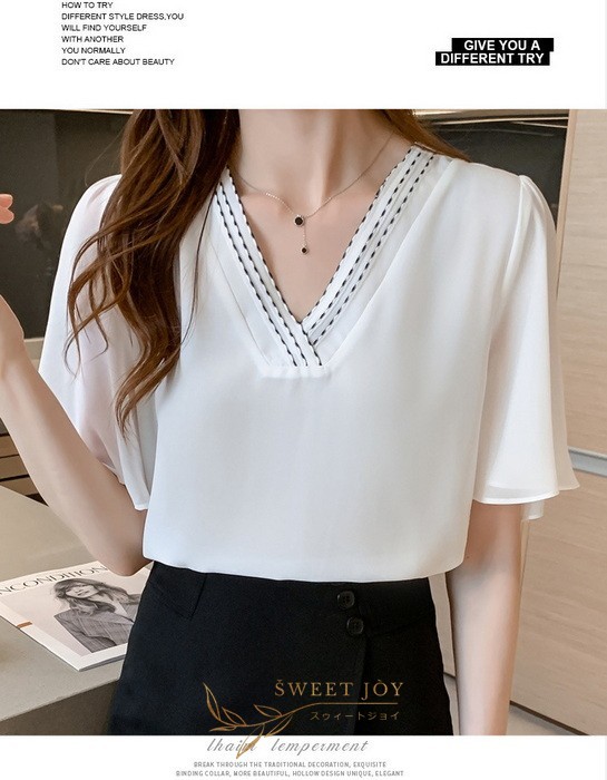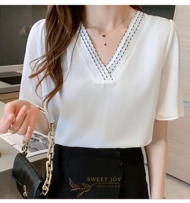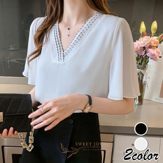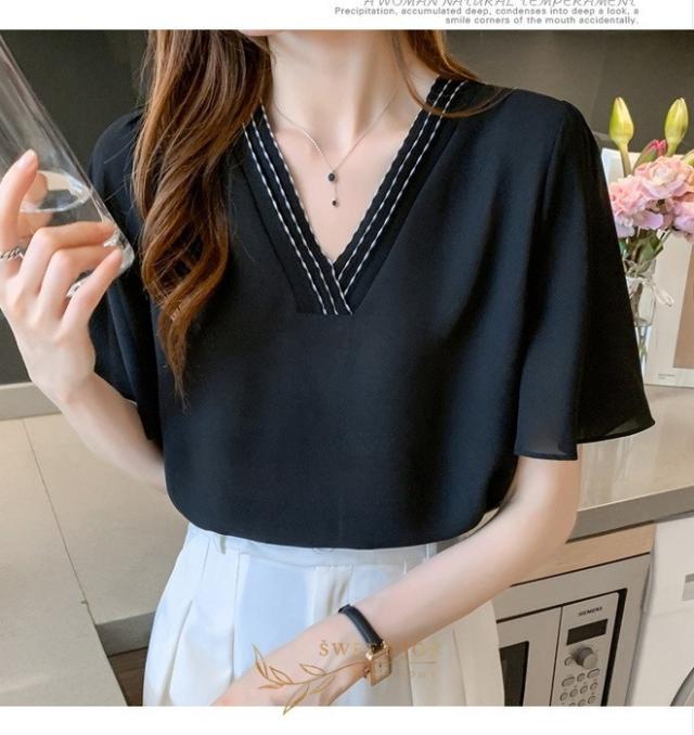 ブラウス レディース 40代 春夏新作 オシャレブラウス シフォンブラウス白 Vネックブラウス 半袖ブラウス 韓国風トップス 通勤 OL ゆったりシャツ 30代 50代