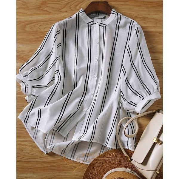 ブラウス レディース 40代 春夏新作 オシャレブラウス 白シフォンシャツ 半袖トップス ボーダー柄 上品 大人 通勤 30代 50代