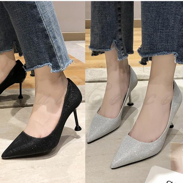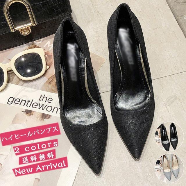 ハイヒール パンプス ピンヒール レディース カジュアル キラキラ シンプル とんがりトゥ 疲れない 軽量 美脚 エレガント 靴 通勤 おしゃれ