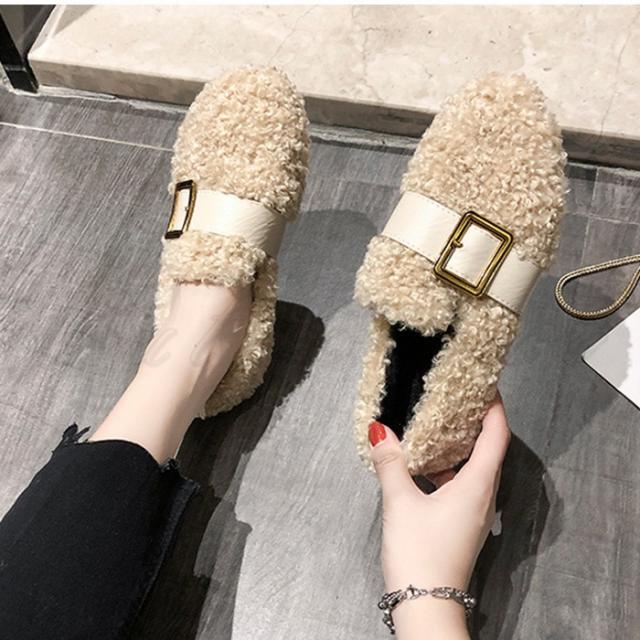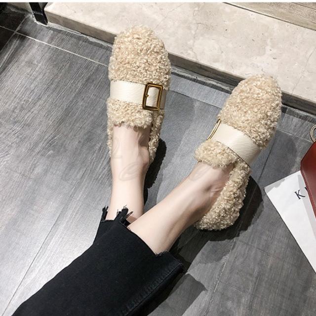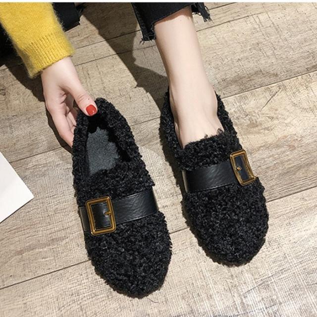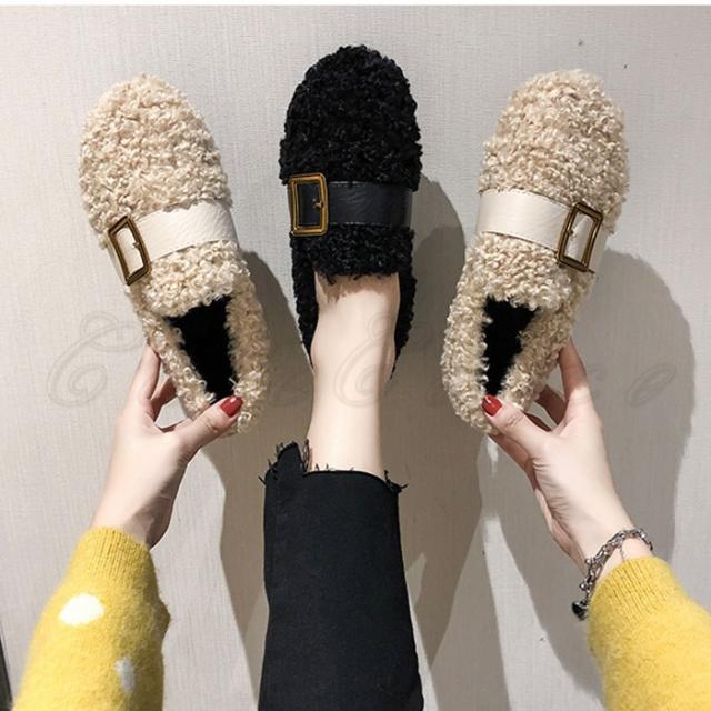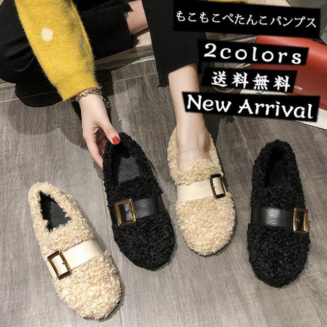 もこもこぺたんこパンプス レディース フリース ファーシューズ ぺたんこ靴 ふわふわ 防寒 あったか 裏起毛 ボア付き きれいめ おしゃれ