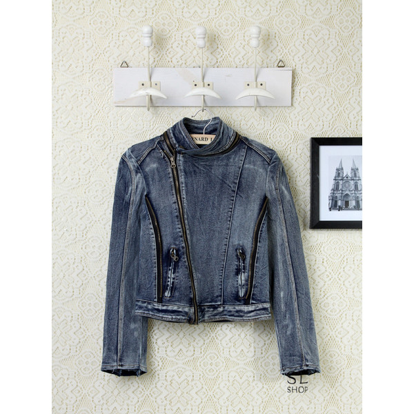 Gジャン レディース デニムジャケット ショート丈 細身 アウター ジャケット ジッパー コーデ おしゃれ 2021秋 韓国風