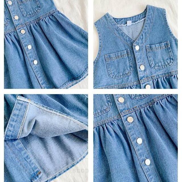 ワンピース ノースリーブ 子供 女の子 春 子供服 無地 デニム ワンピース 可愛い ゆったり ビーチ きれいめ カジュアル 卒園式 入学式