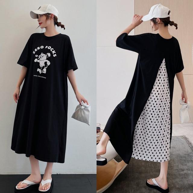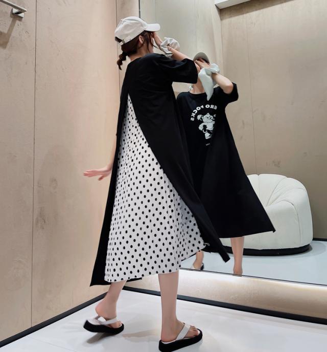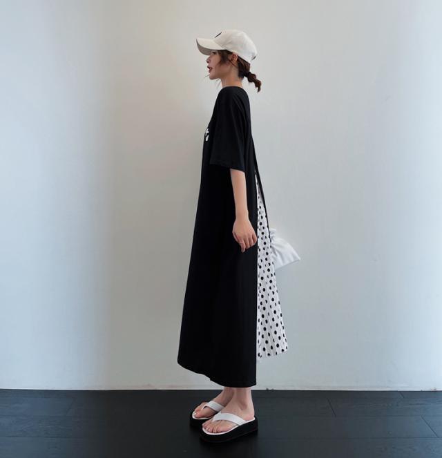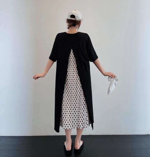 ワンピース レディースドット柄 マキシワンピース 半袖 配色 夏 水玉柄 体型カバー ゆったり カジュアル