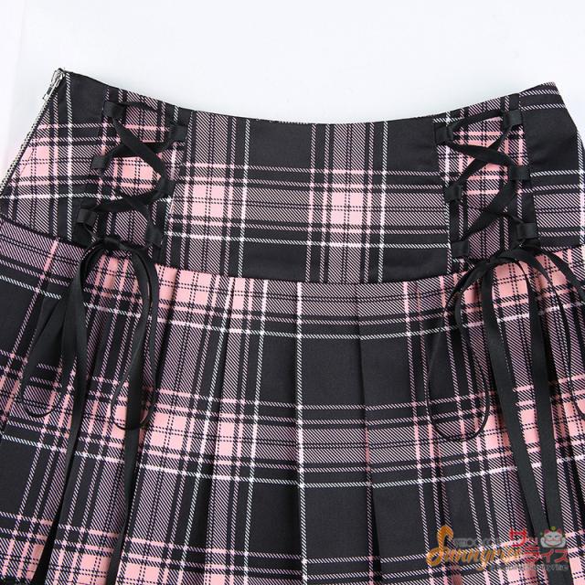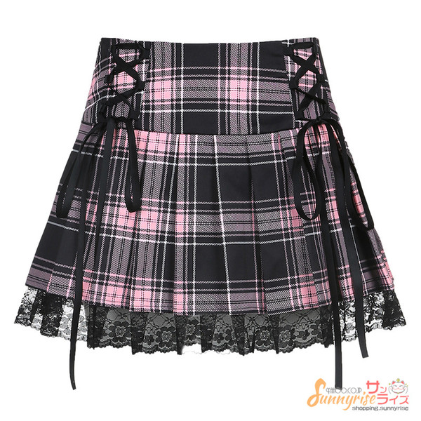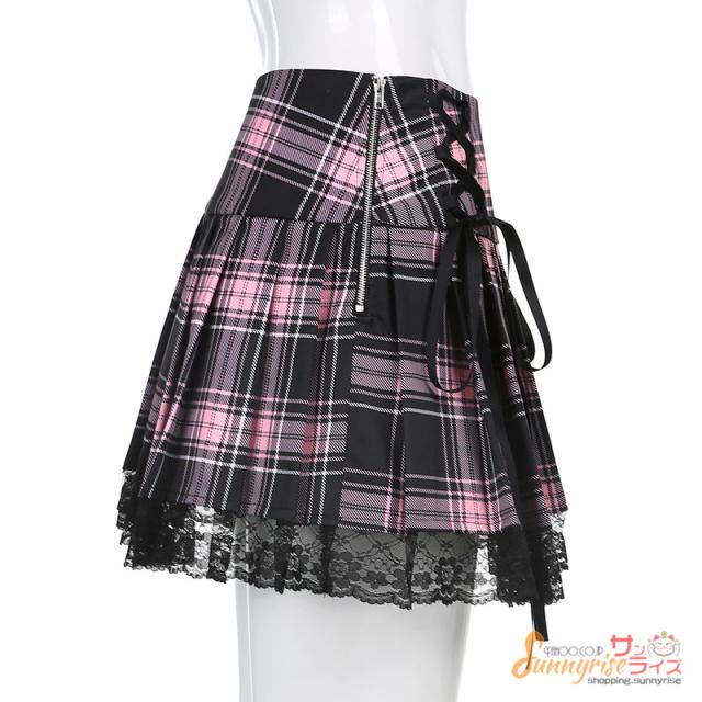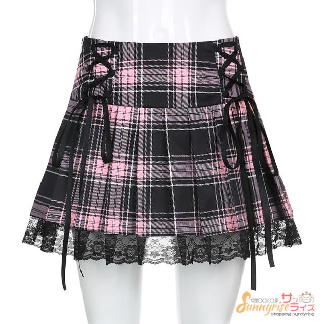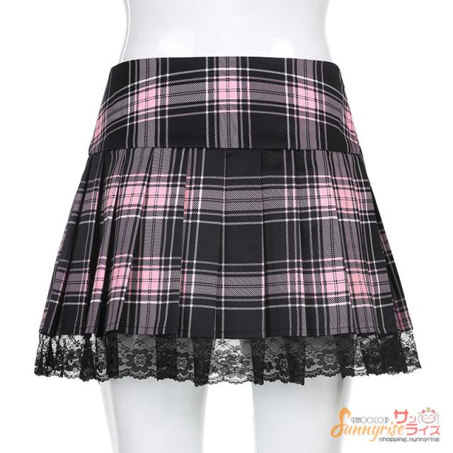 スカートチェック柄 プリーツスカート レディース ダンス ヒップホップ ストリート ダンススカートレース付き ステージ衣装 お洒落 原宿系