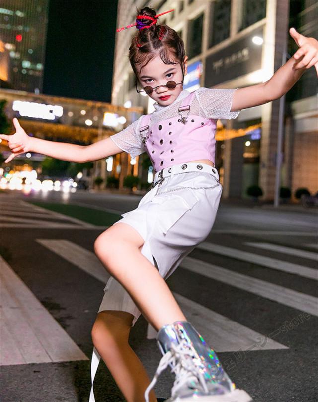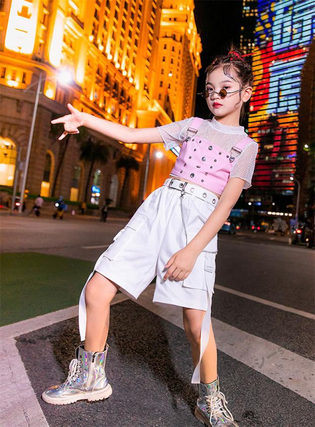 キッズ ダンス衣装 ヒップホップ HIPHOP 子供 女の子 ダンス ホワイト 半袖 ロングパンツ ステージ衣装 練習着 演出服 120-160cm