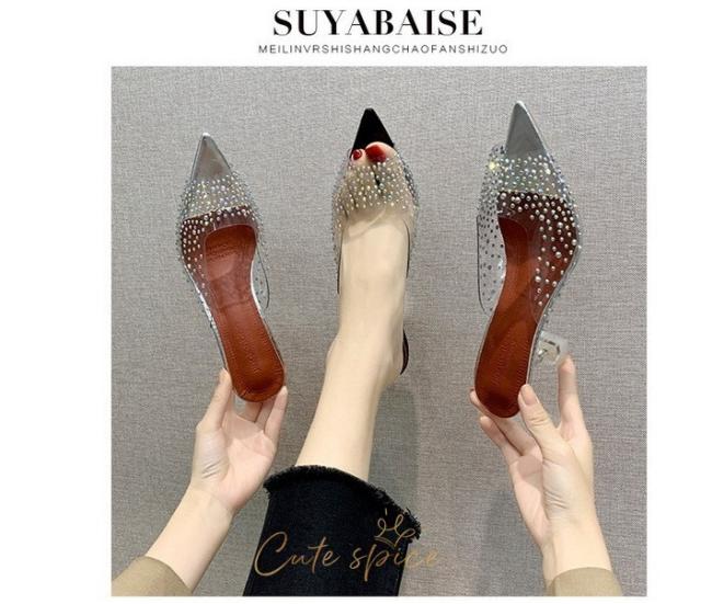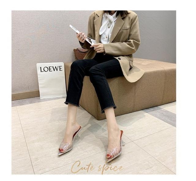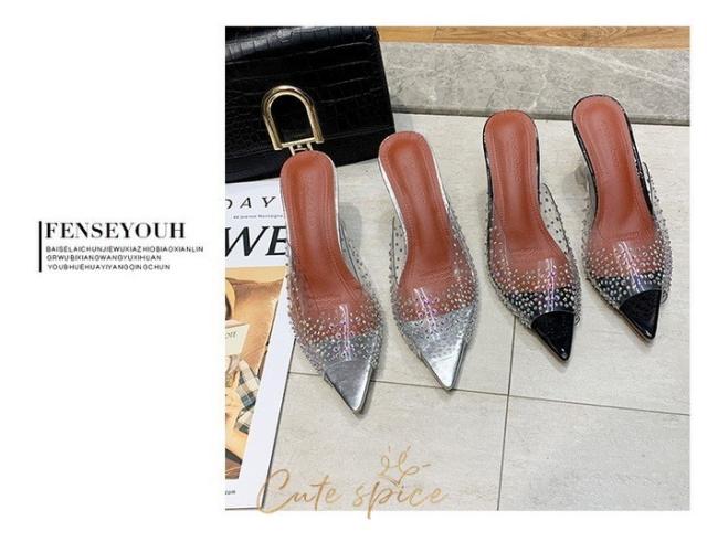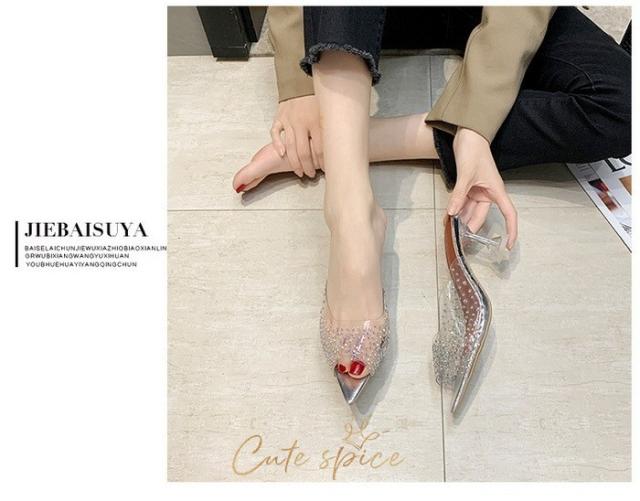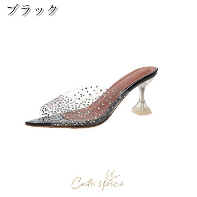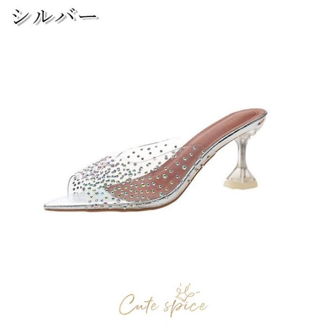 ミュール サンダル レディース 履きやすい 夏 ハイヒール靴 ミュール ヒールサンダル ハイヒール 透明pu スリッポン キラキラ 歩きやすい オシャレ美脚 大人新作