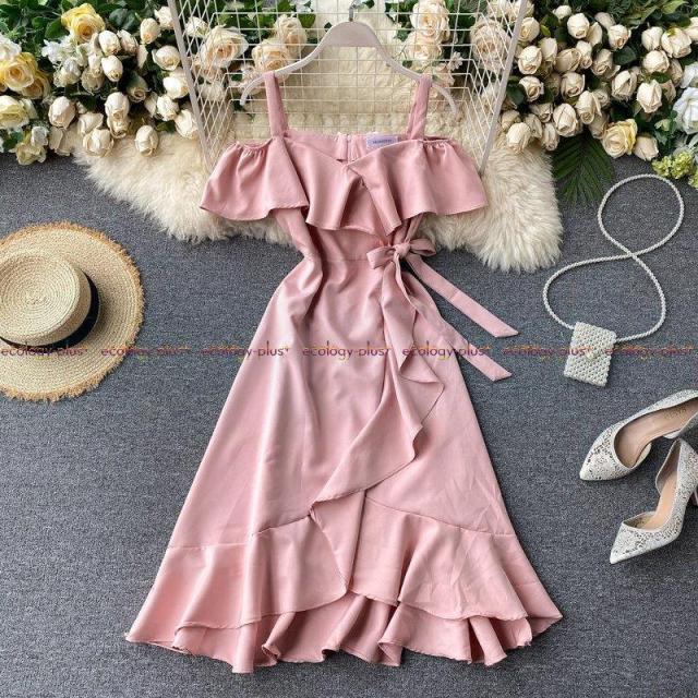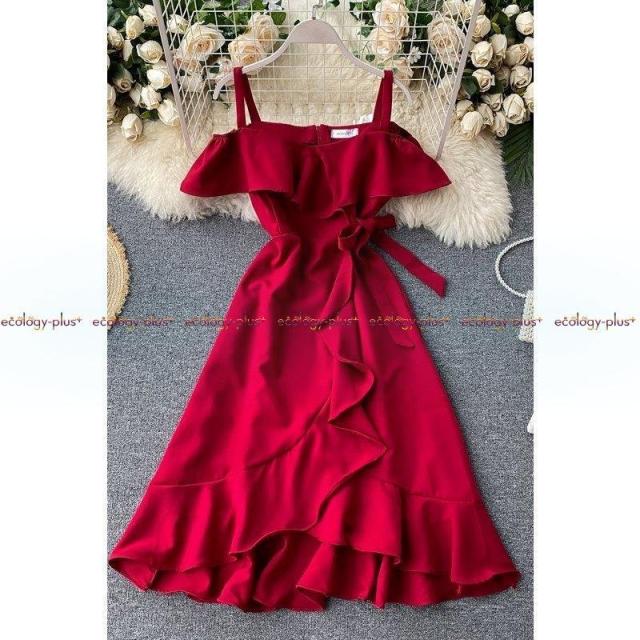 タイファッションブランドの新しいスカート女性2021人気の陰謀中空ストラップレススリングフリルドレス女性サマードレス