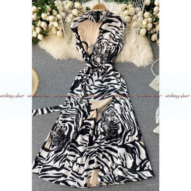 春服、欧米風デザイン、ファッショナブルなドレス、ロングスカート、女神ルック、気質、ラウンドネックスリムドレス