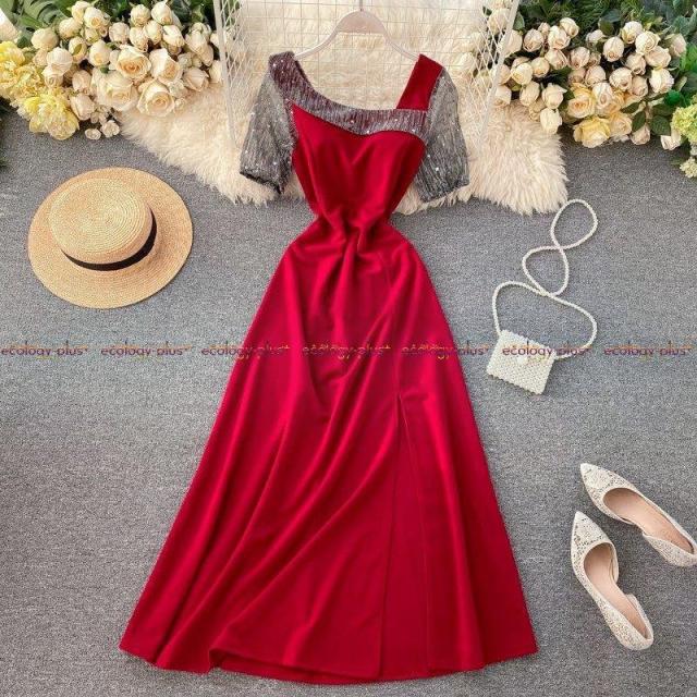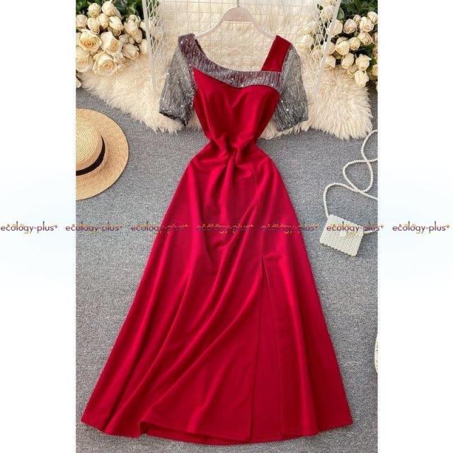 女性気質ドレス、ガウン、女神ファン、ファッショナブルなデザイン、斜めの襟、ウエスト、薄い、レトロな膝丈のドレス、