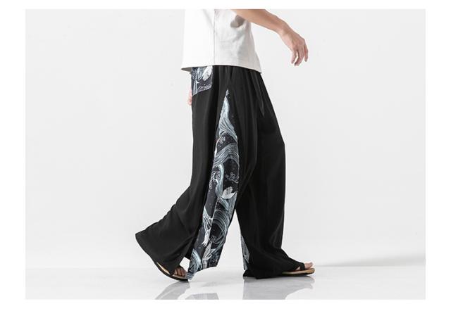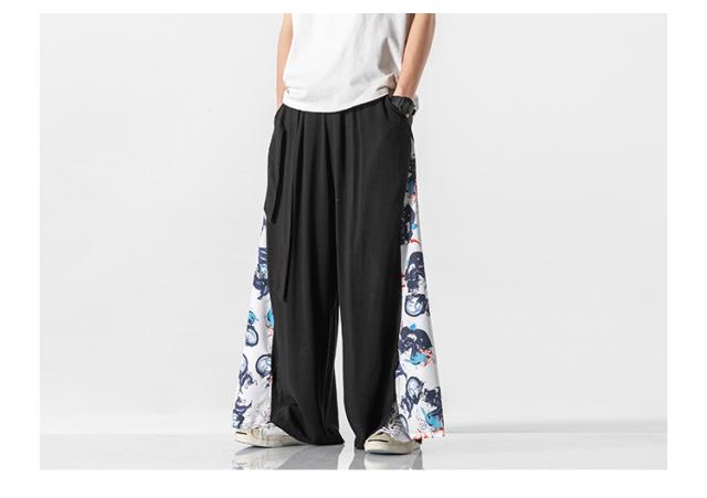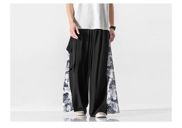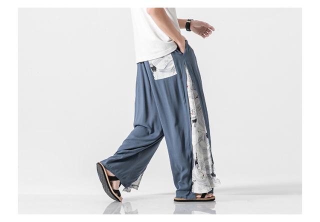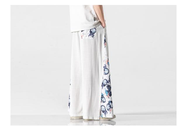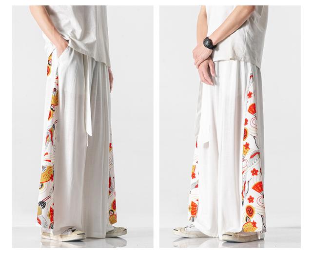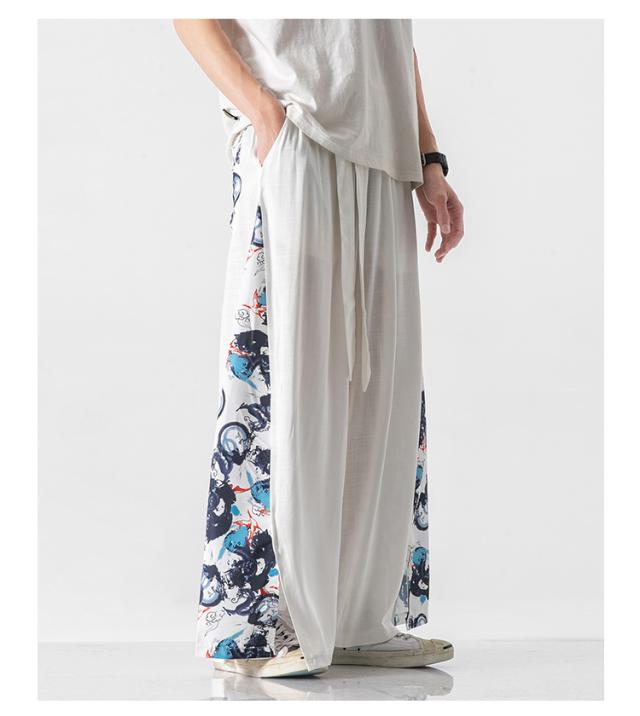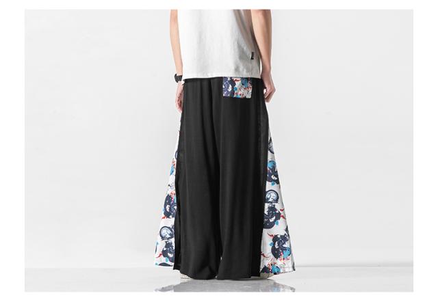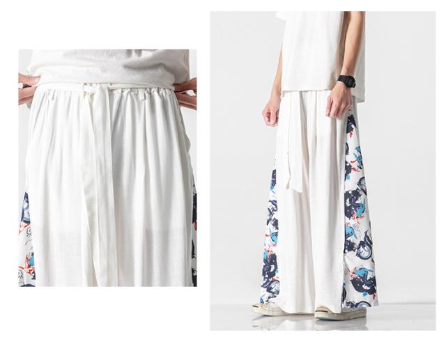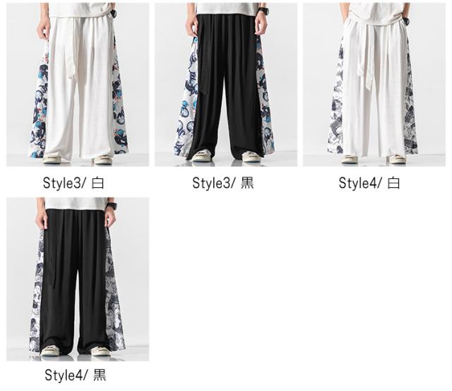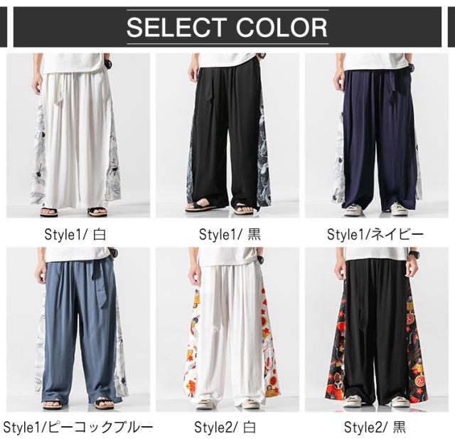 ワイドパンツ メンズ 麻パンツ サルエルパンツ おしゃれ リネン 綿 花柄 カジュアル ゆったり 美脚 春夏