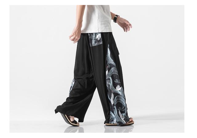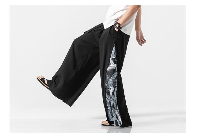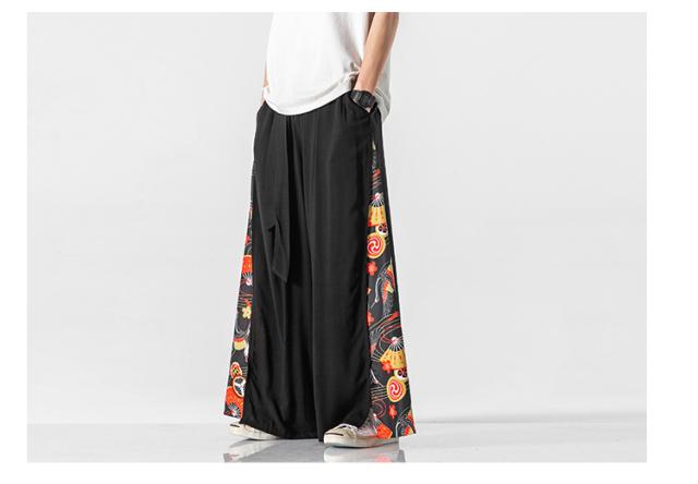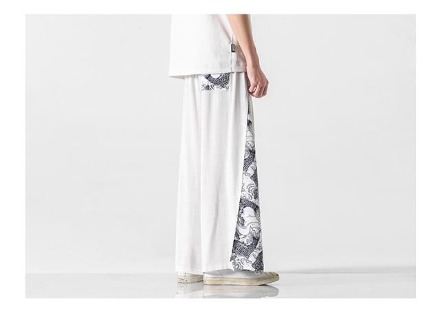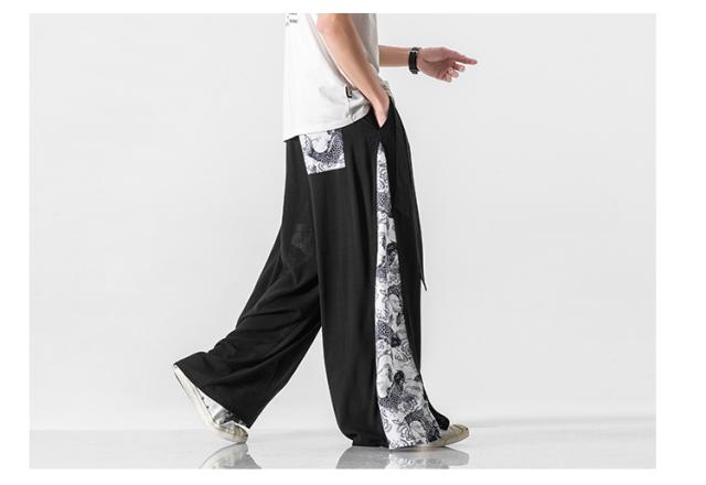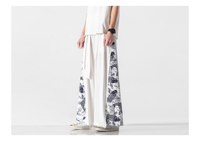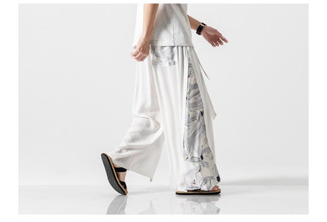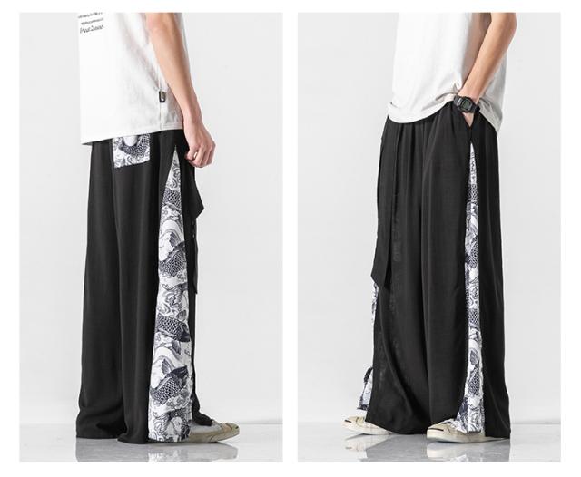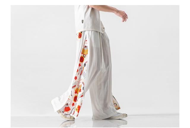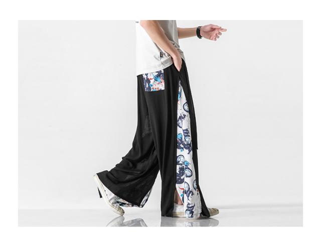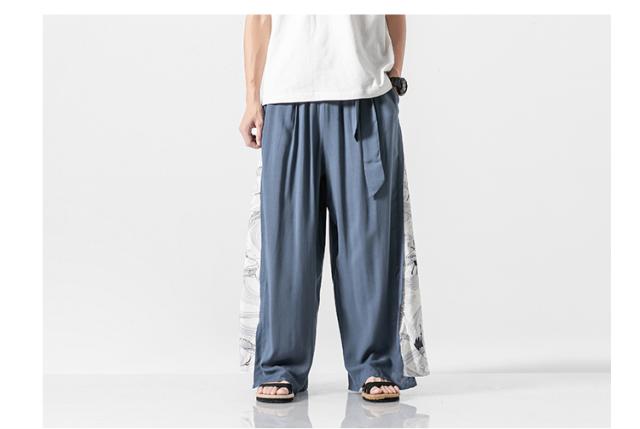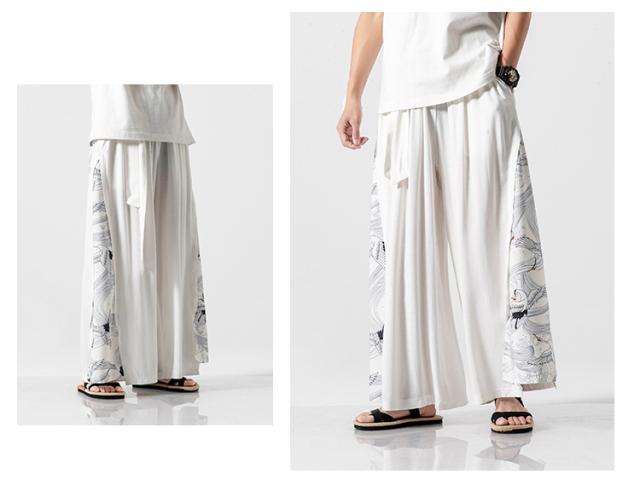 ワイドパンツ メンズ 麻パンツ サルエルパンツ おしゃれ リネン 綿 花柄 カジュアル ゆったり 美脚 春夏