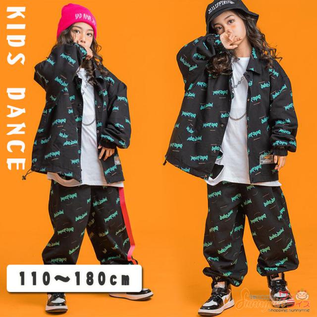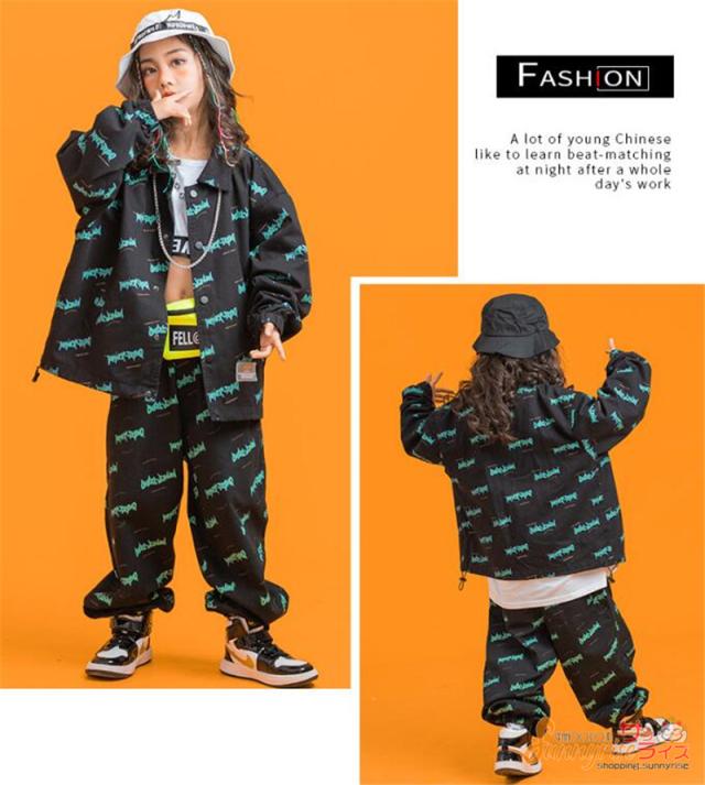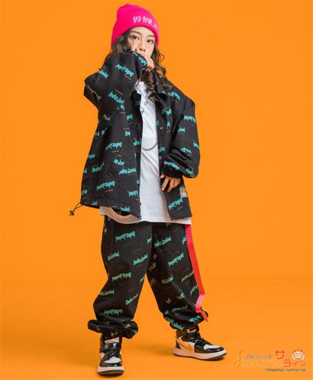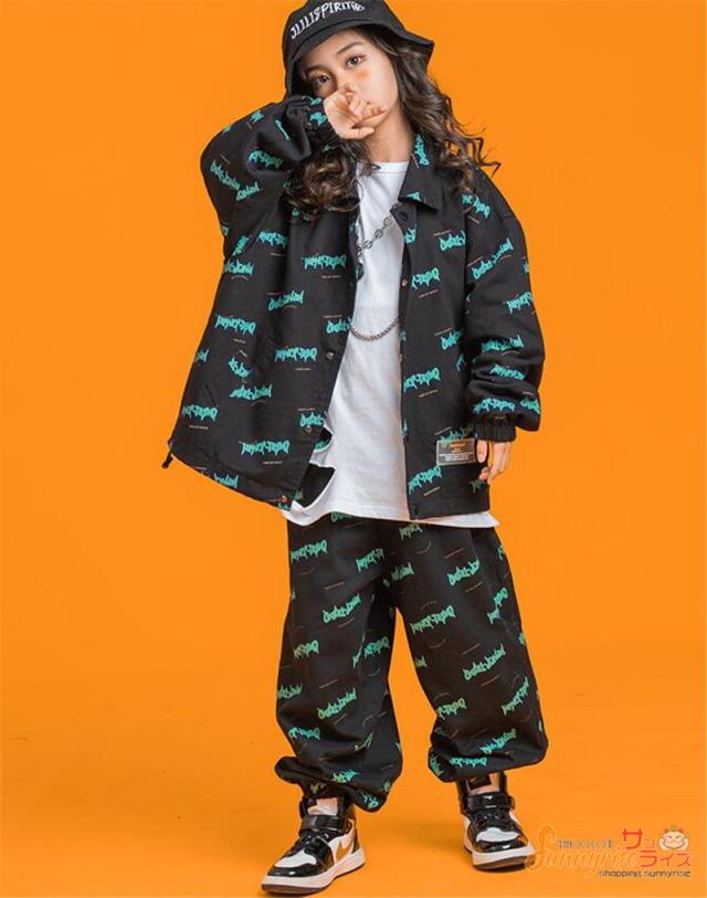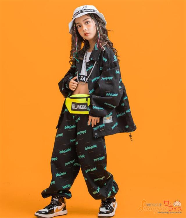 キッズダンス 衣装 ヒップホップ 子供服 セットアップ 白tシャツジャケット パンツ ガールズ 韓国 ペイズリー 総柄 ステージ衣装 団体服 練習着 舞台衣装