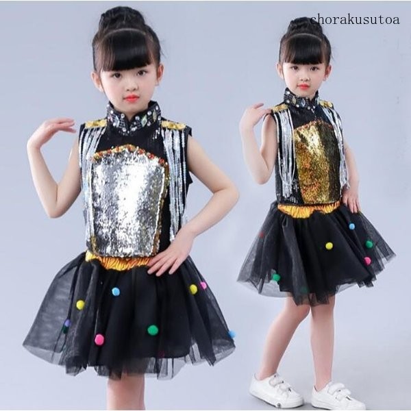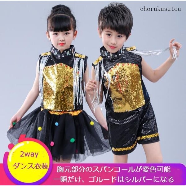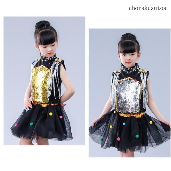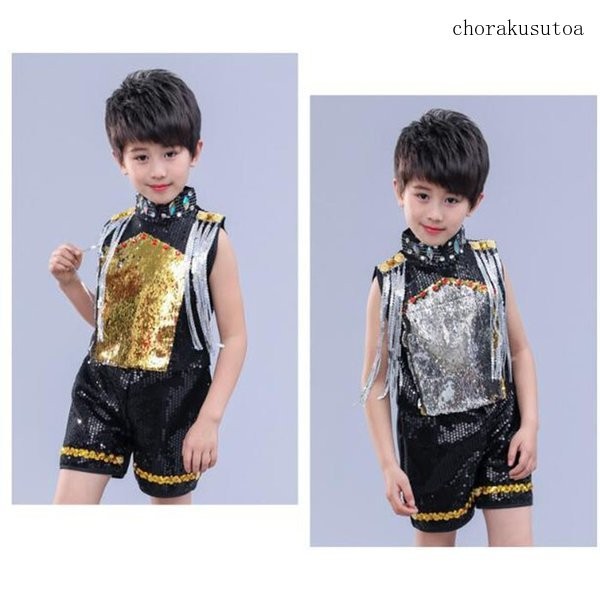 子供ジャズダンス衣装 演出服 男の子 女の子 トップス チュールスカート パンツ ヒップホップ セットアップ スパンコール ステージ服 発表会
