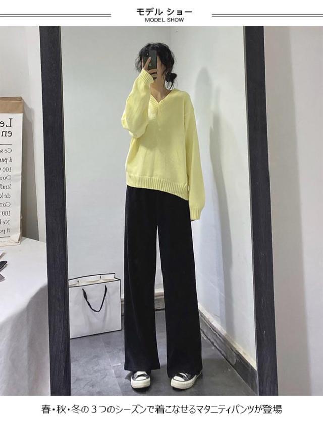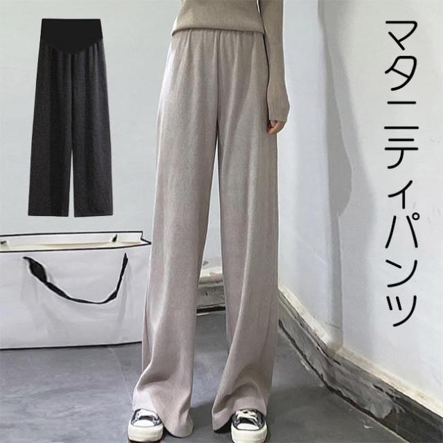 マタニティパンツ アジャスター付き 春秋 ワイドパンツ 厚手 マタニティウェア 冬 ニットパンツ レディース ゆったり ロングパンツ 妊婦