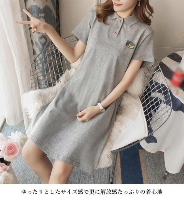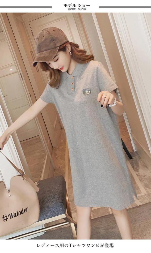 Tシャツワンピース 半袖 レディース 夏ワンピース ロングTシャツ ワンピース ポロシャツ 女性 半袖Tシャツ ショートワンピ カットソー 折り襟