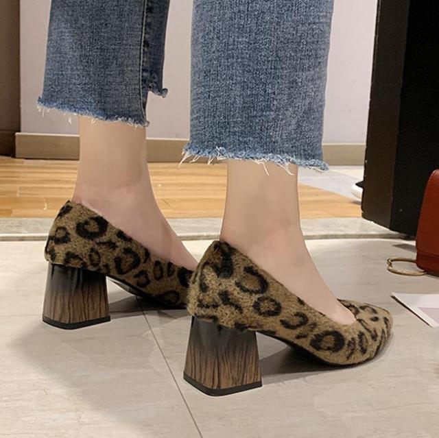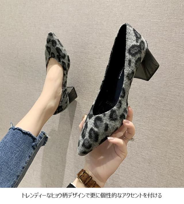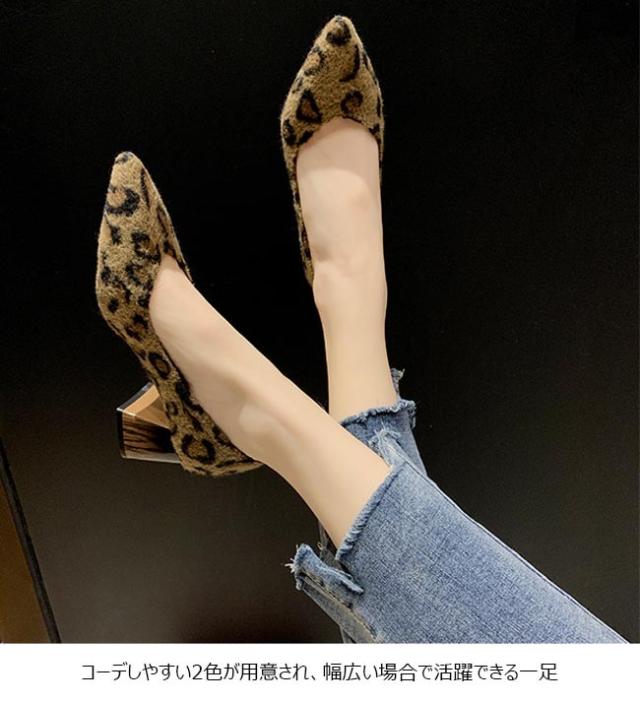 豹柄パンプス レディース パンプス ポインテッドトゥ ヒョウ柄 シューズ ローカット 太ヒール 女性 太ヒールパンプス 美脚 靴 お洒落