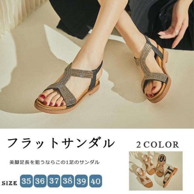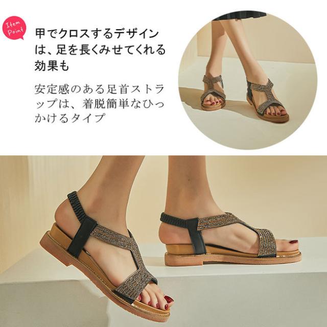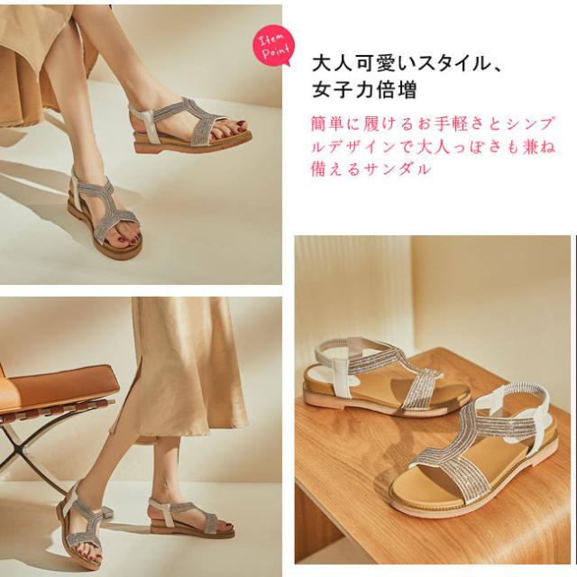 サンダル レディース ストラップサンダル オープントゥ フラット ぺたんこ キラキラ 歩きやすい 履きやすい カジュアル 可愛い おしゃれ 人気 大人 美脚 軽量