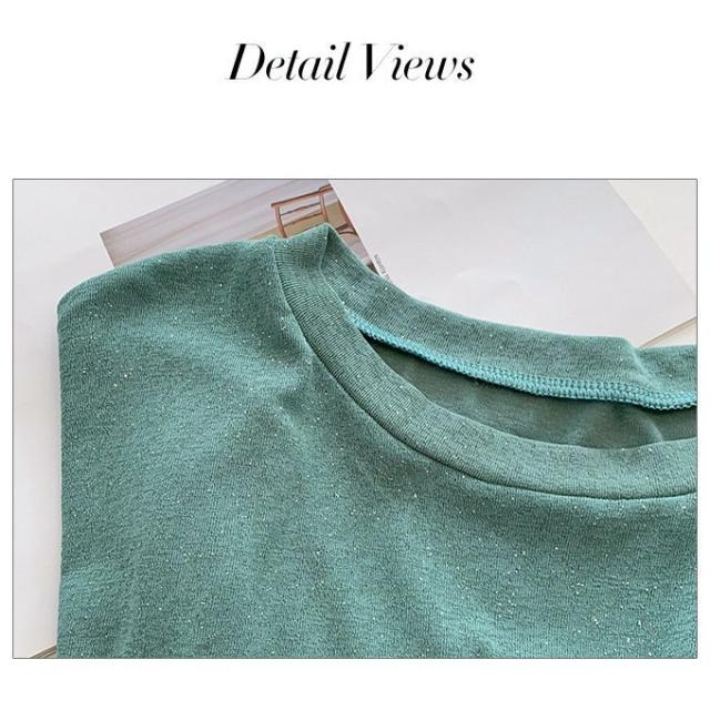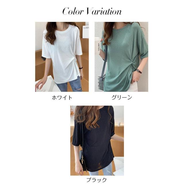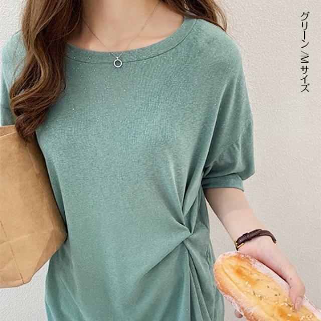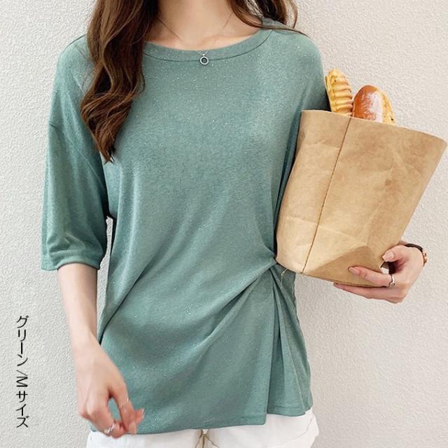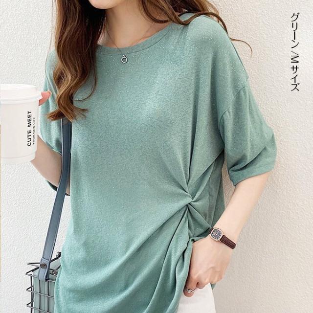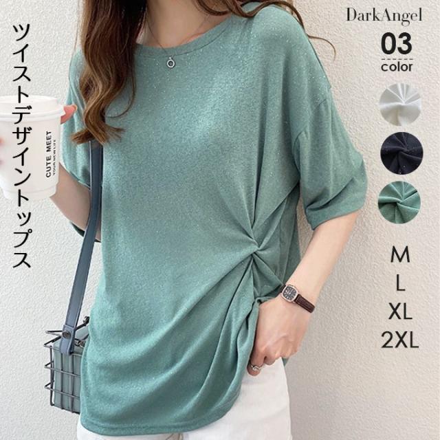トップス レディース 40代 30代 M/L/XL/XXL サマーニット デザインT ラメ カットソー 半袖 五分袖 ゆったり プルオーバー