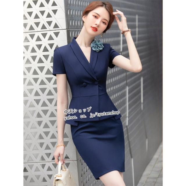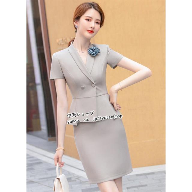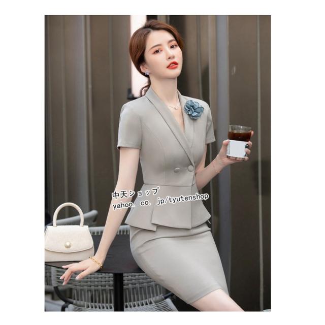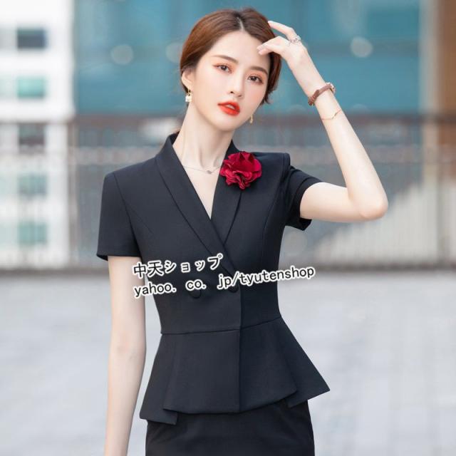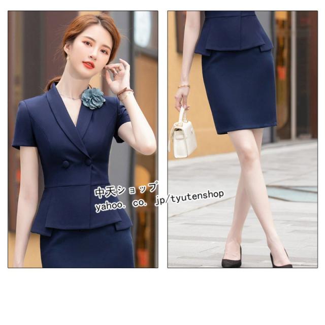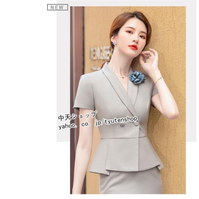 スカートスーツ レディース 2点セット フォーマルスーツ 半袖ジャケット+ミニスカート 春夏 テーラード 大きいサイズ ビジネス 事務服 冷房対策 着痩せ 大人
