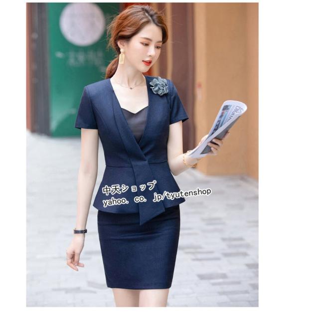 スカートスーツ 2点セット レディース フォーマル 半袖ジャケット+ミニスカート 春夏ジャケット Vネック 着痩せ 冷房対策 入学式 卒業式 発表会 乗務員