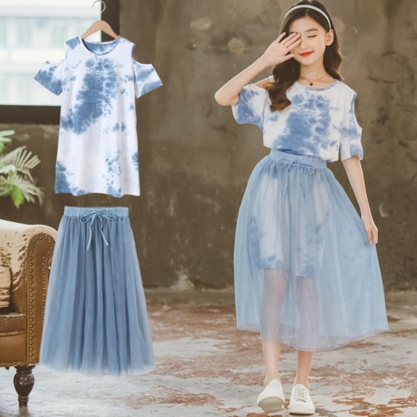 韓国子供服 ワンピースセット 女の子 おしゃれ セットアップ 半袖 ワンピース * チュールスカートキッズ ガールズ 夏着 2点セットお出かけ 通学着 海外旅行