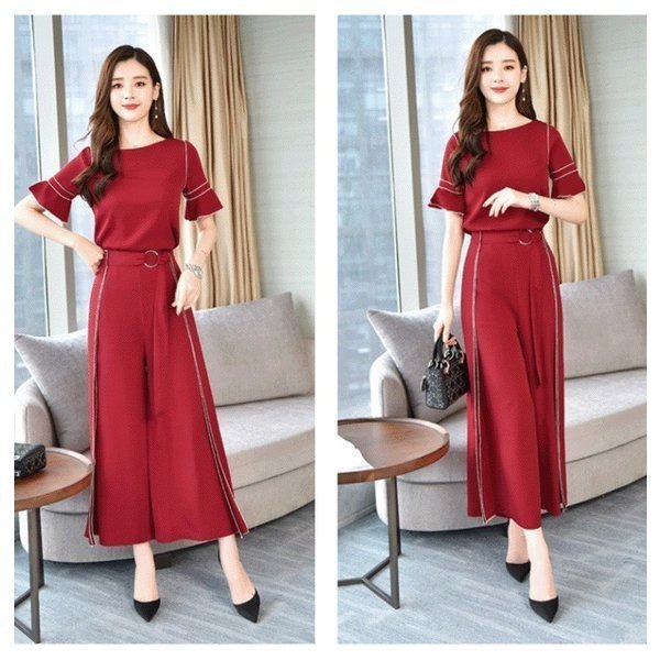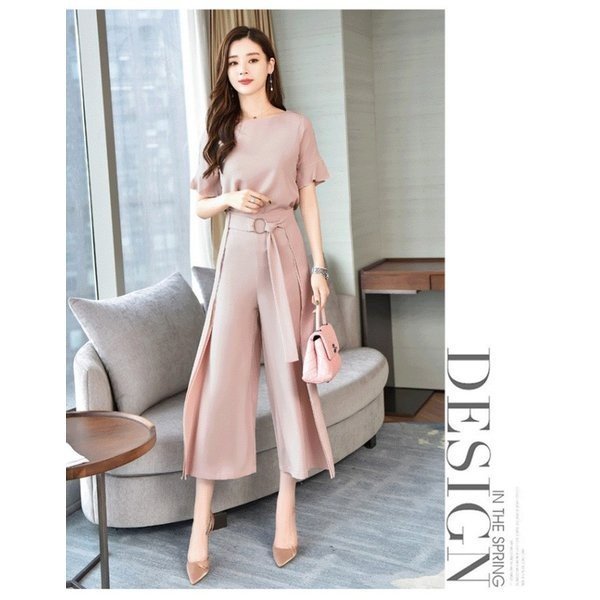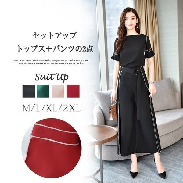 セットアップ ワイドパンツ レディース きれいめ 2点セット フォーマル パンツドレス 結婚式 シフォンブラウス ガウチョパンツ