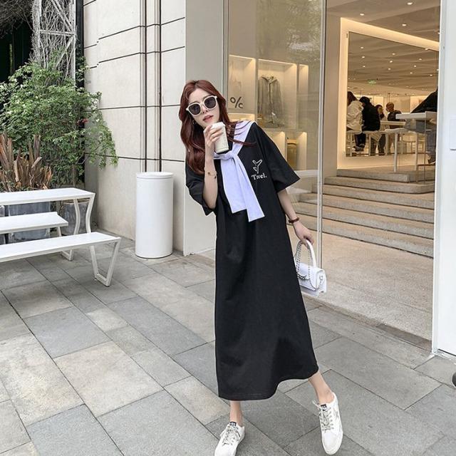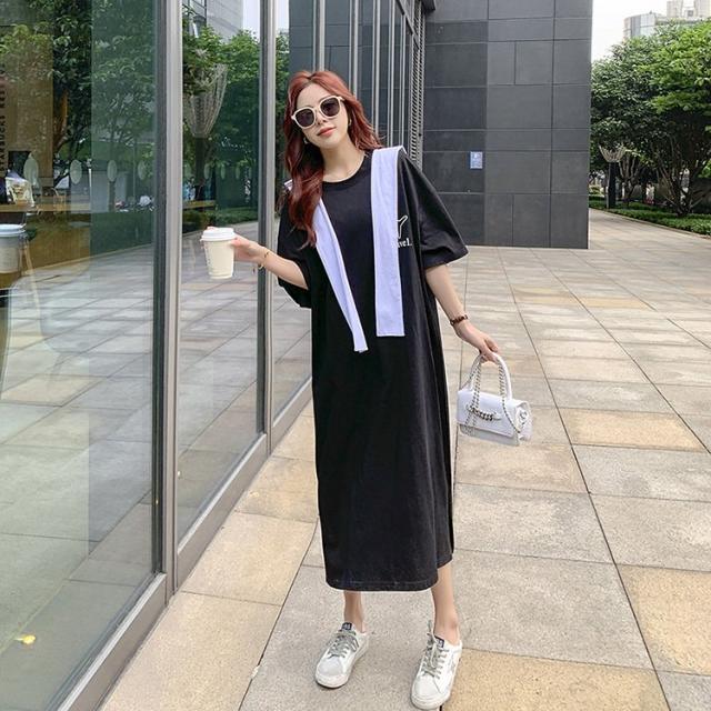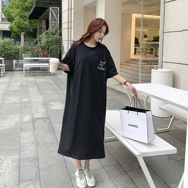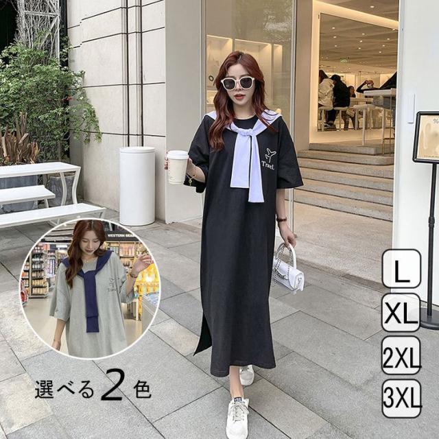 ワンピース ロンT Tシャツワンピース 40代 春夏 半袖 ロング丈 綿 ワンピース レディース 体型カバー 着痩せ 大きいサイズ 韓国風 ゆったり 20代 30代