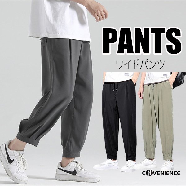 ワイドパンツ メンズ 大きいサイズ 美脚 脚長 バギーパンツ イージーパンツ サルエルパンツ カジュアル 九分丈 ジョガーパンツ ワークパンツ 無地 ゆったり