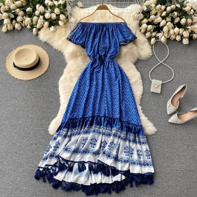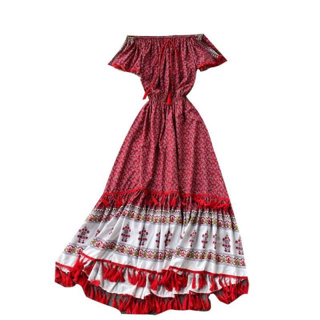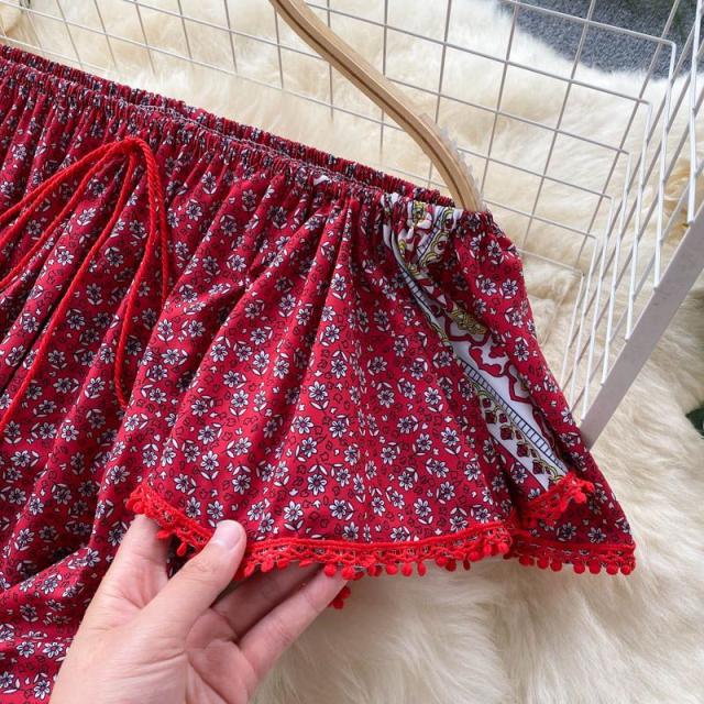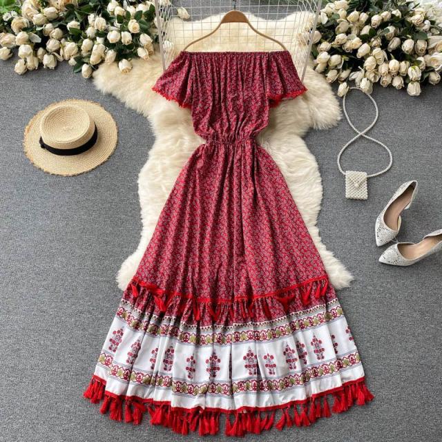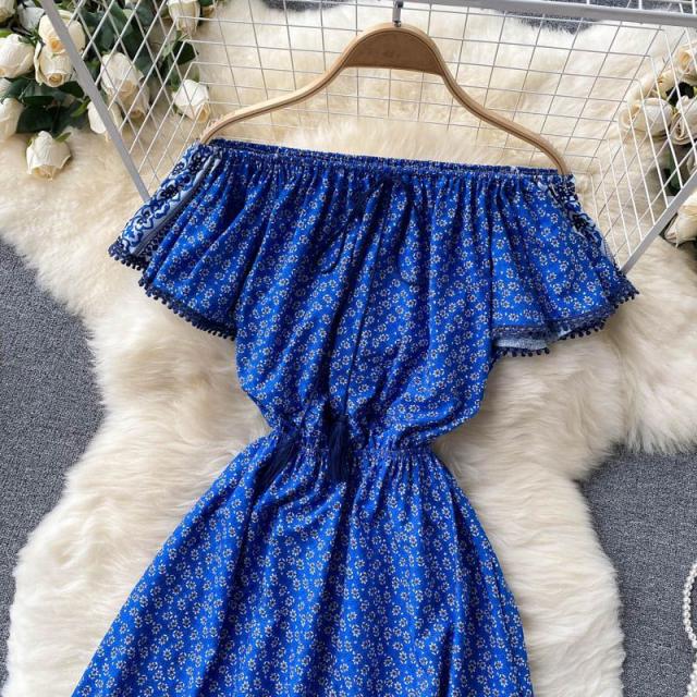 ワンピース プリント柄 ウエストシェイプ オフショルダー 胸元リボン 上品 キレイ目 きれいめ 大人カジュアル ママ リモート
