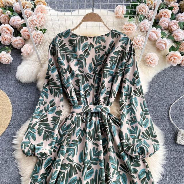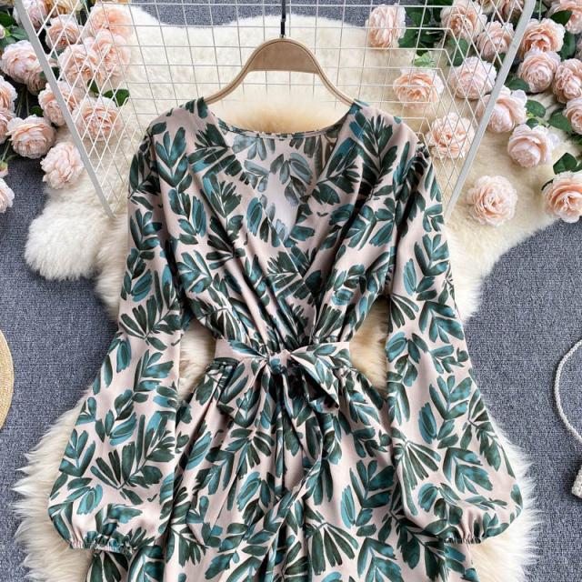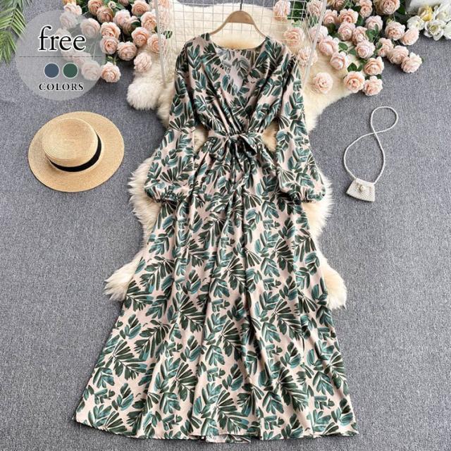 ワンピース プリント柄 ウエストシェイプ カシュクール リモート ディナー ドライブ リゾート 休日スタイル 食事会 大人可愛い