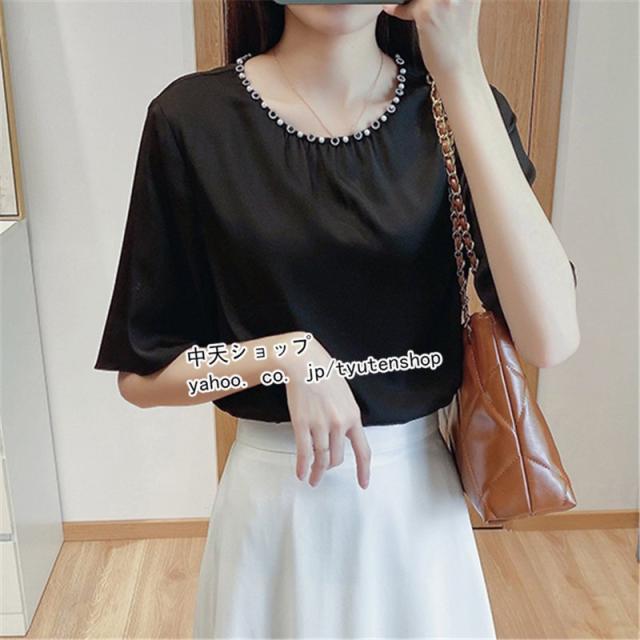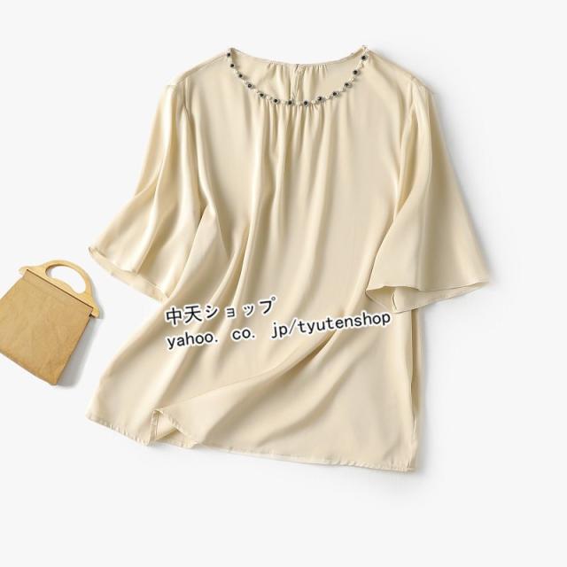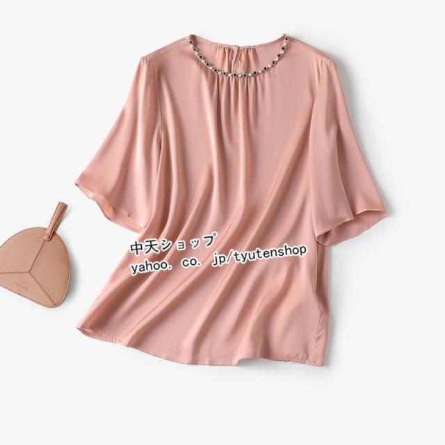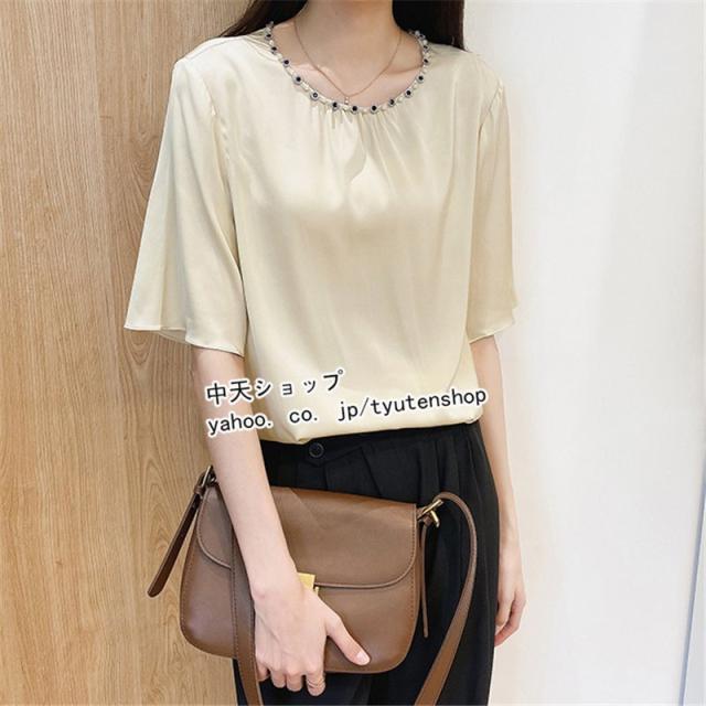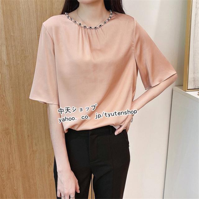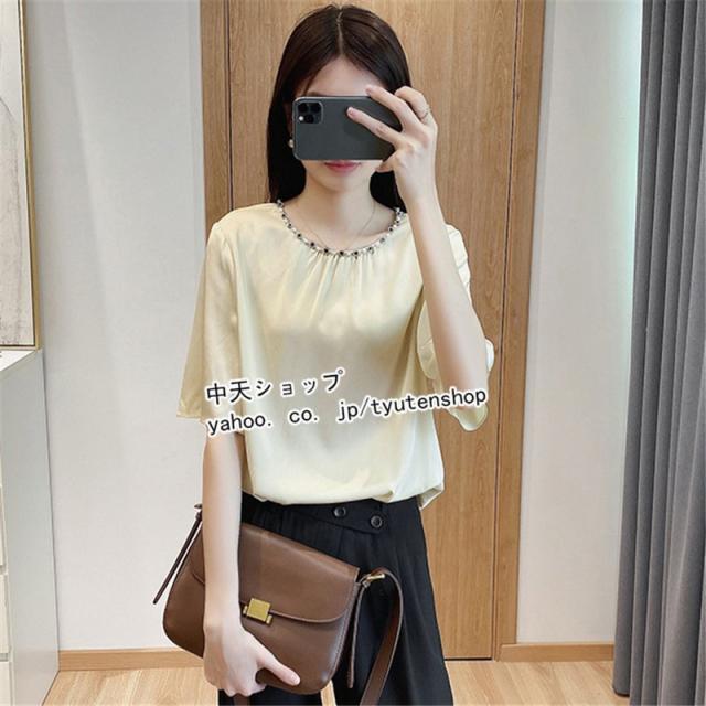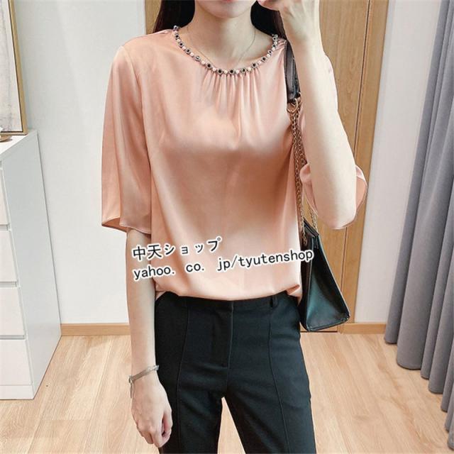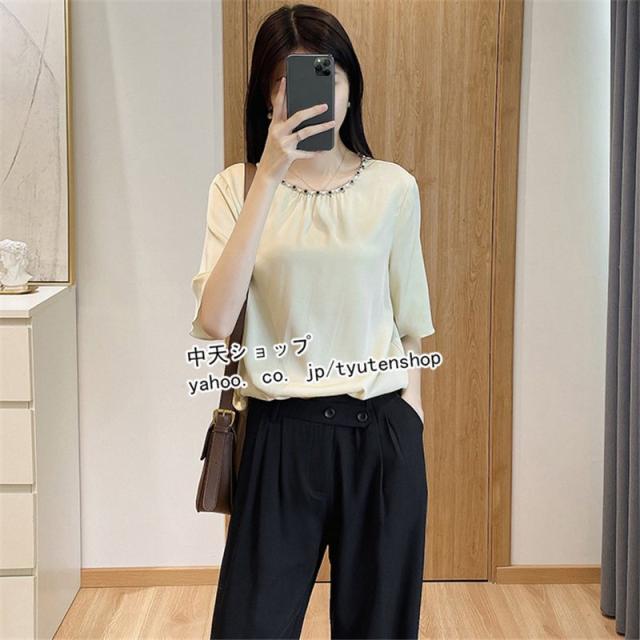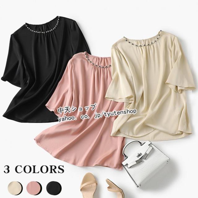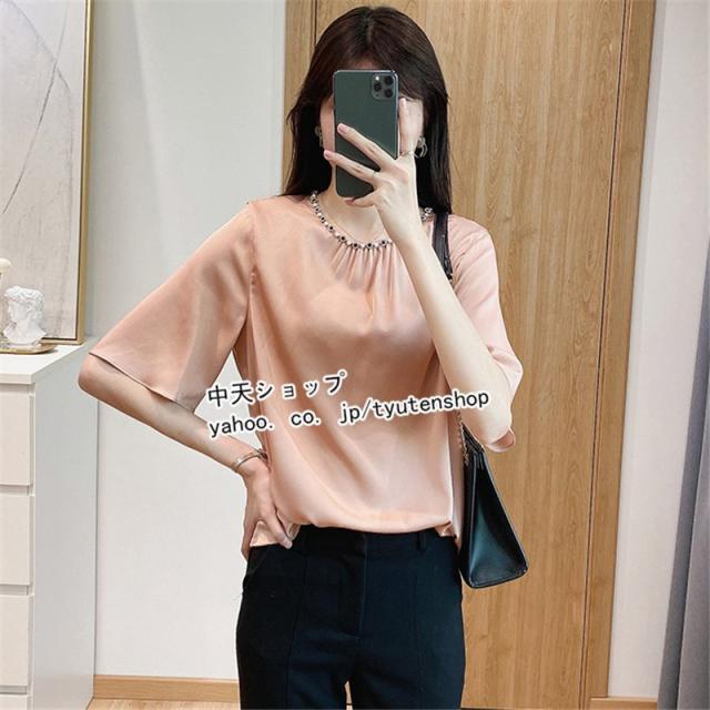 ブラウス レディース 半袖ブラウス トップス 夏 着痩せ 大人 大きいサイズ通勤 オフィス Uネック おしゃれ OL カジュアル Tシャツ 30代~50代 ゆったり 2021
