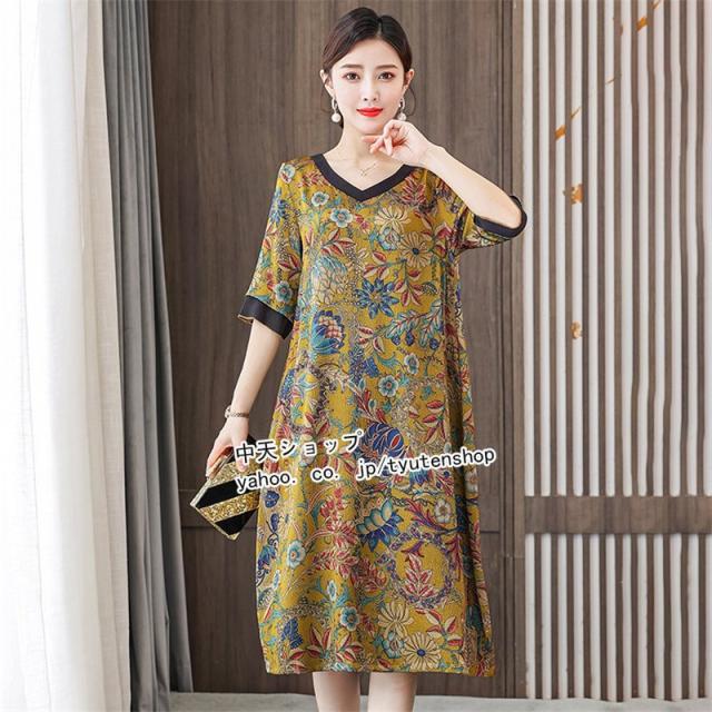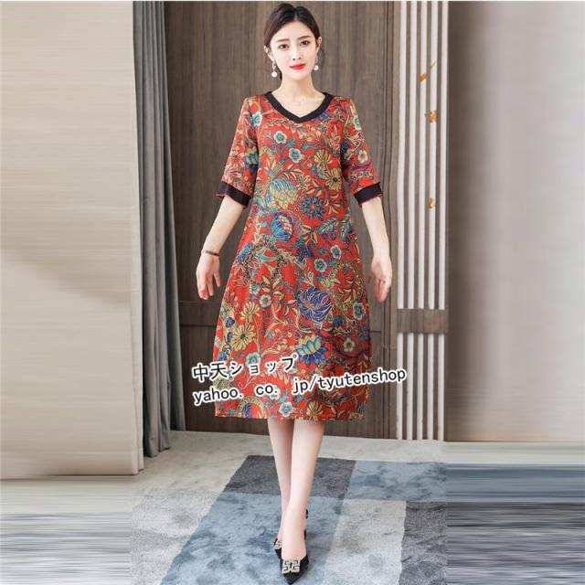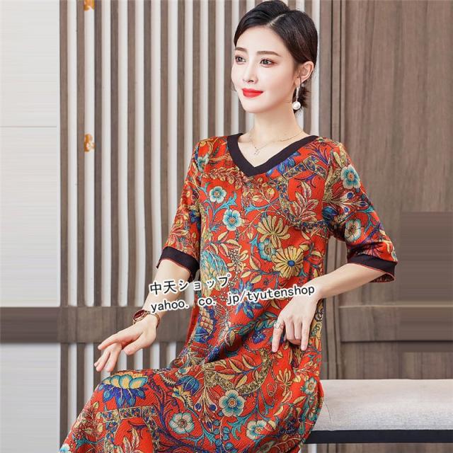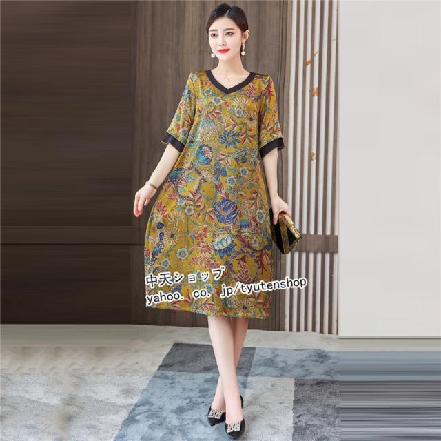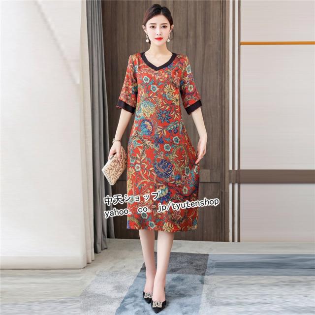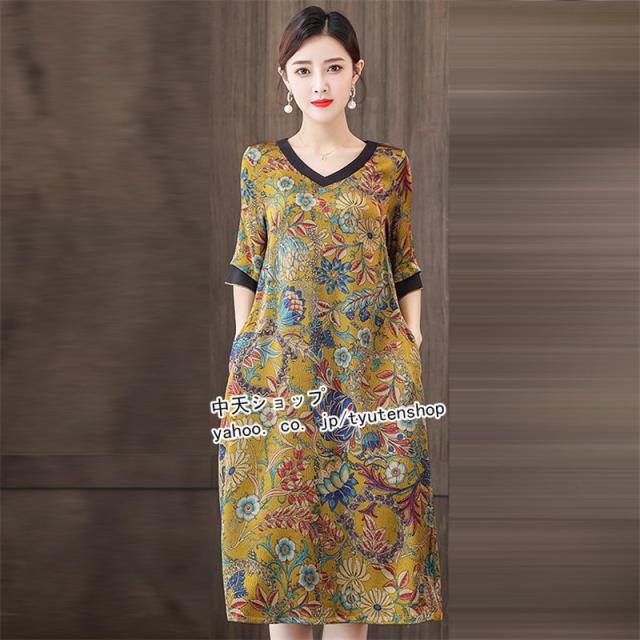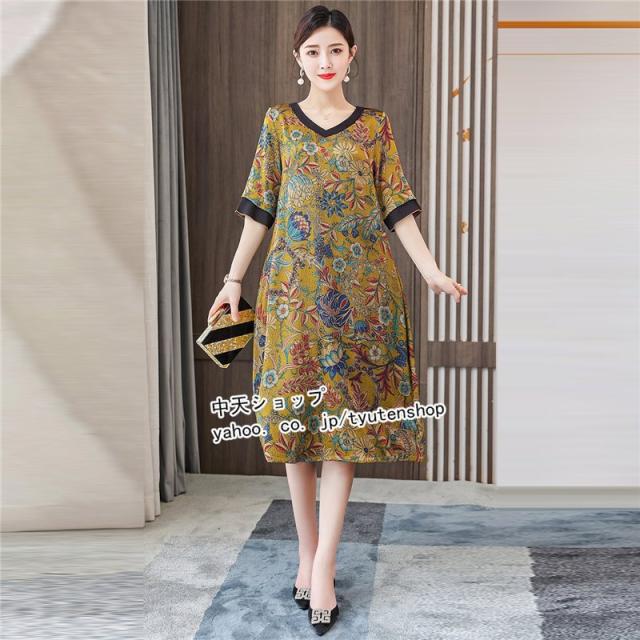 ワンピース レディース 40代50代 春夏 ミモレワンピース ママワンピース おしゃれワンピース 大きいサイズ 着痩せ 結婚式 披露宴 上品 気質 エレガント 大人