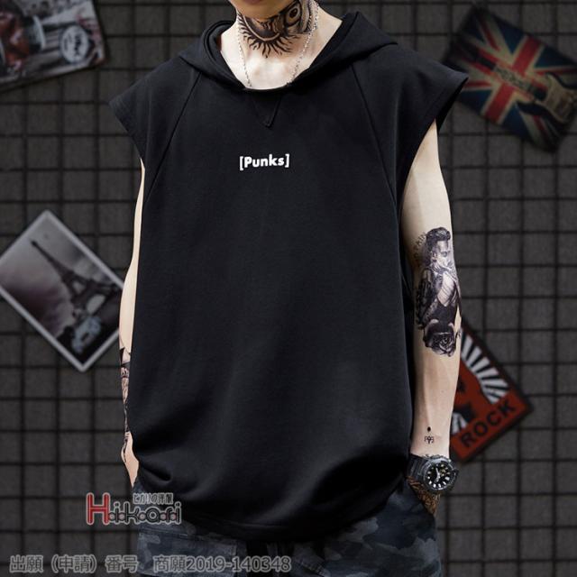 タンクトップ パーカー メンズ ノースリーブ トップス スポーツ メンズファッション 2021夏 薄手